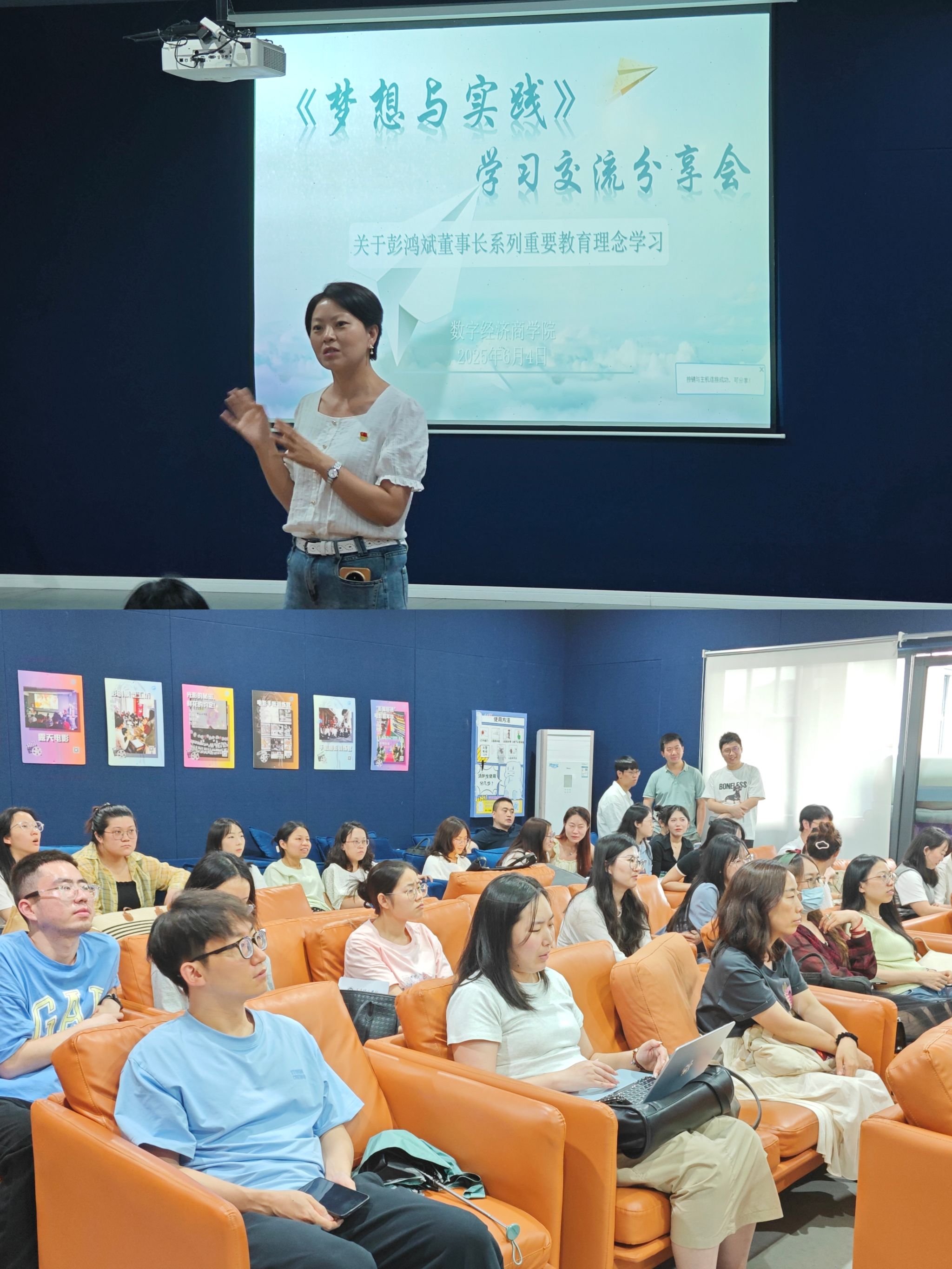 2025年6月4日下午18:00,重庆移通学院数字经济商学院在綦河书院银河影音室召开《梦想与实践》学习交流分享会,深入学习彭鸿斌董事长系列重要教育理念及相关学习资料。本次会议由数字经济商学院院长刘贵容主持,教学副院长王哲和全体专任教师共同参与本次会议。