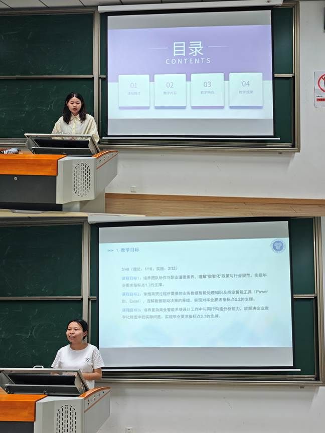 为深入贯彻落实本科教学工作合格评估要求,数字经济商学院数字经济教研室于6月11日在行者楼101教室开展“教师说课程教学”专题活动。旨在为教师搭建交流研讨平台,通过分享教学经验,共同优化课程设计、探索教学方法创新,从而有效提升课程教学实效性。