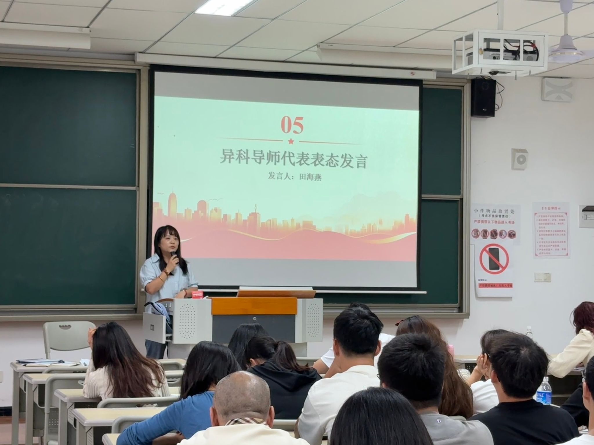 本次会议还邀请到了来自通信与信息工程学院辅导员田海燕老师作为我院异科导师在仪式上表态发言。对数字经济与信息管理学院学风建设工作的支持与赞同。在活动中本院学生的积极性极高,体现了学院管理的优良风貌。同时通过异科导师也为学生提供跨学科的学习指导和交流机会,拓宽学生的视野,培养学生的综合素养。