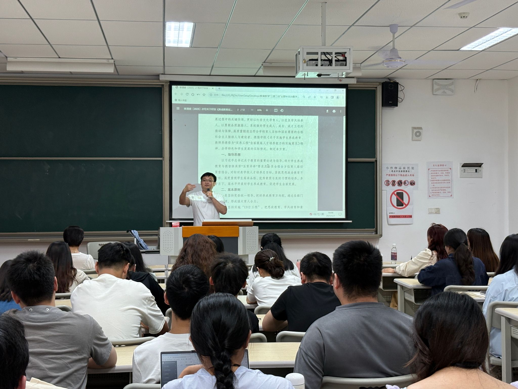 会议第一项议程,教学副院长王哲对学校学风建设与养成教育方案及相关文件进行了深入解读。他从学校的整体规划出发,详细阐述了学风建设的目标、任务和具体措施,让全体师生对学校的学风建设要求有了更加清晰的认识。王哲副院长从中指出,学风建设是一项长期而系统的工程,需要全体师生共同努力,从自身做起,从点滴做起,切实将学风建设落实到日常学习和生活中。