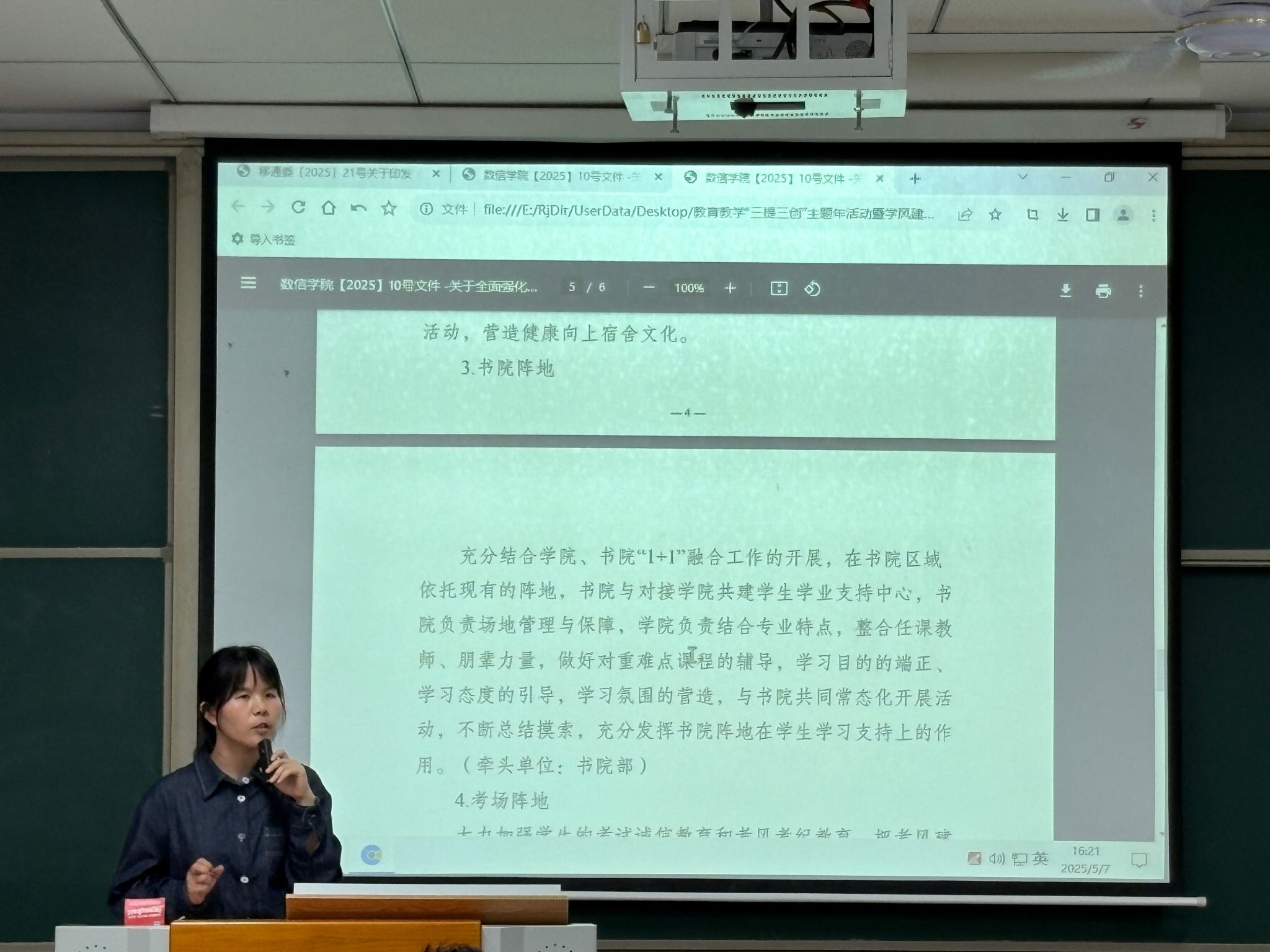 会议最后一项议程,刘贵容院长对本次启动仪式进行了总结讲话。刘院长对全体师生在学风建设中的积极参与和支持表示感谢。刘院长强调,学风建设是学院发展的永恒主题,是提高教育教学质量的重要保障。希望全体师生能够以本次启动仪式为契机,进一步提高认识,将“教育教学三提三创”的理念贯穿到教育教学和学习生活的全过程,形成全员参与、全过程管理、全方位育人的良好局面。通过共同努力,打造具有数字经济与信息管理学院特色的优良学风,为学院的高质量发展和学生的成长成才奠定坚实的基础。