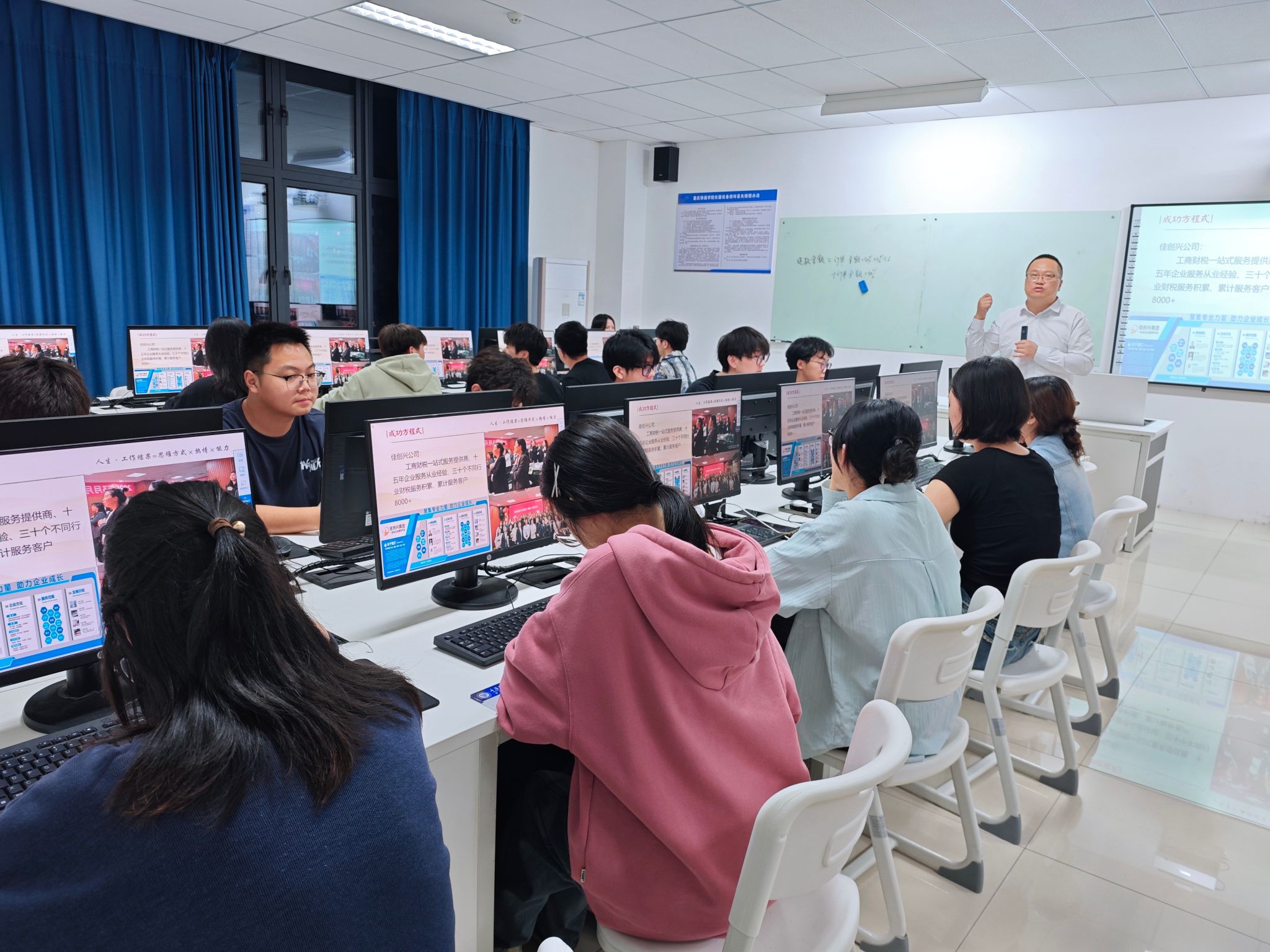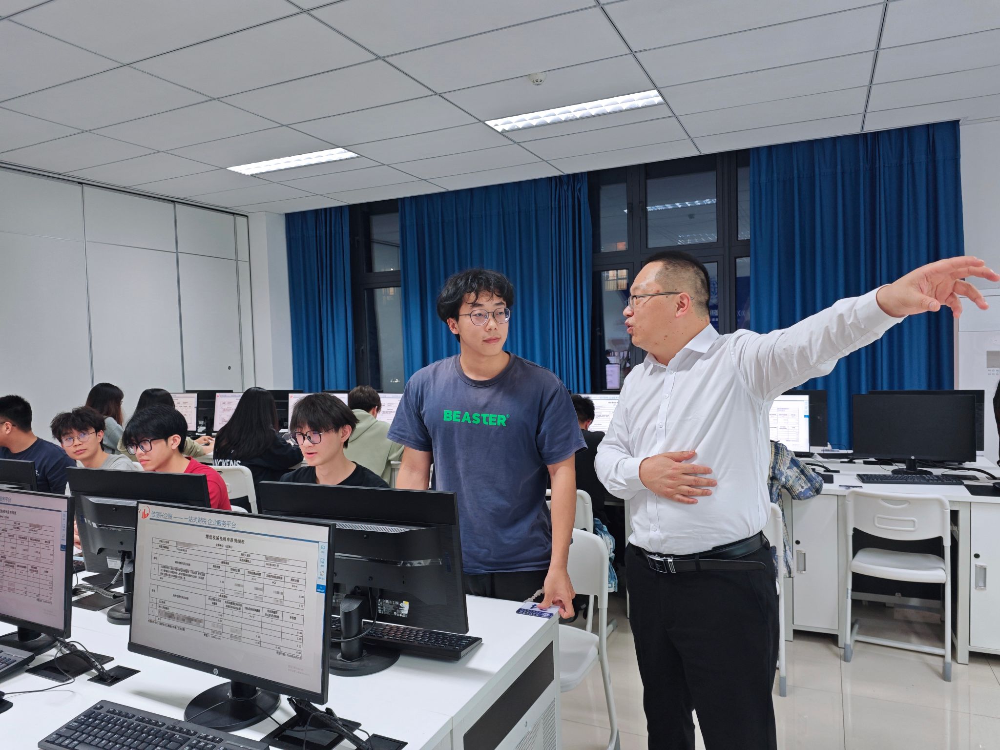 王小佳董事长以个人创业经历为切入点,分享了从企业管理者视角对财税工作的深度思考。在实务解析环节,他结合小规模纳税人增值税政策的最新动态,系统梳理申报表填写的核心要点,并通过真实案例拆解企业税务筹划的底层逻辑。课堂上,学生通过模拟申报场景,深入理解政策法规与商业实践的结合路径,直观感受财税管理在企业经营中的战略价值。