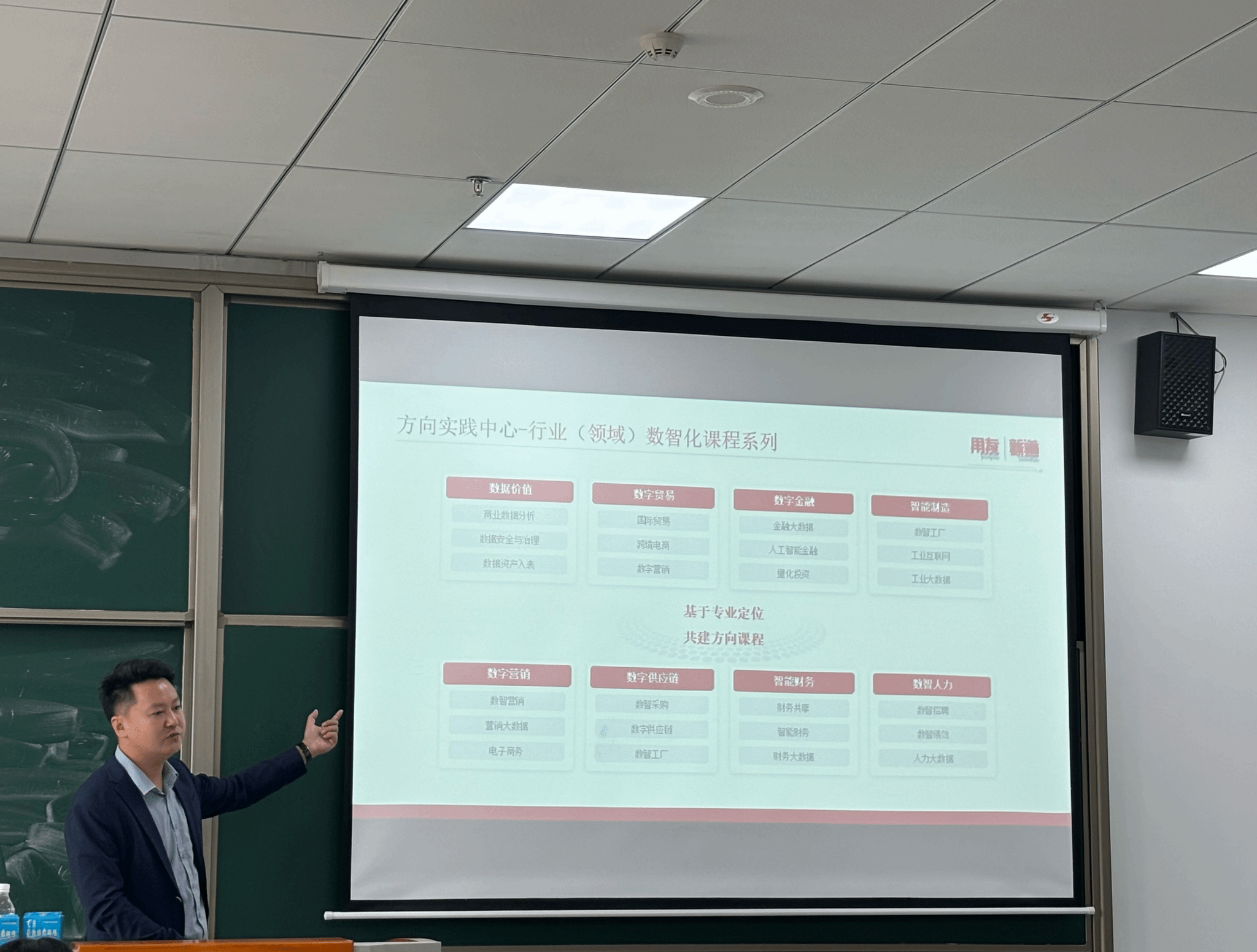 随后,印灿老师将视角聚焦于数字经济人才的培养。他指出,随着数字经济的蓬勃发展,市场对既懂经济又懂技术的复合型人才需求迫切。印灿老师结合自身丰富的行业经验,分享了数字经济人才应具备的关键能力,如数据分析能力、创新思维以及对新技术的快速适应能力等。他还通过实际案例,展示了数字经济人才在企业中的重要角色,以及如何通过数字化手段解决企业面临的实际问题,为学生们的职业发展提供了清晰的方向指引。