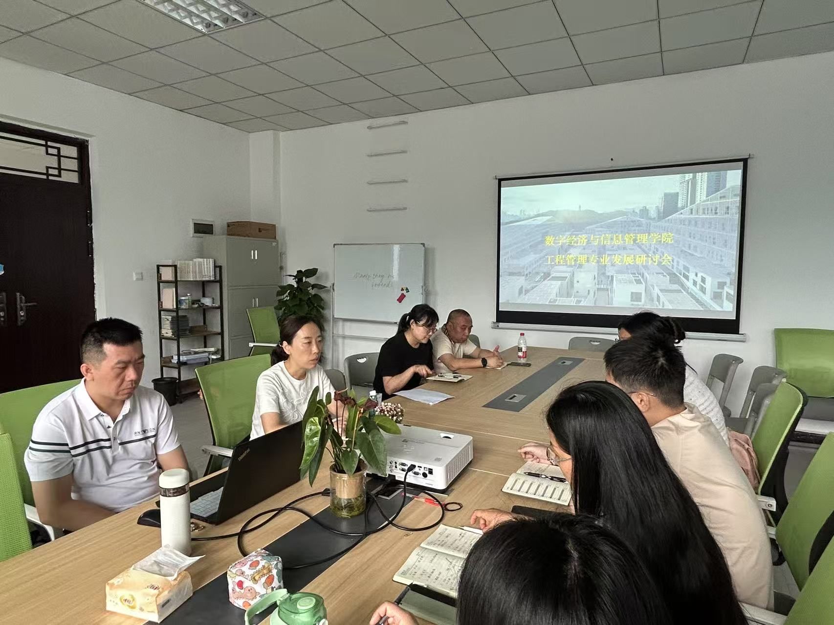 为推动工程管理专业转型升级,数字经济与信息管理学院工程管理教研室于2025年4月22日上午10:00在仁者楼507展开工程管理专业发展研讨会,院长刘贵容教授、教研室主任周梦娇老师及教研室骨干教师参会,围绕工程管理教研室未来发展方向及新专业申报路径展开深入探讨,共同擘画专业发展蓝图。