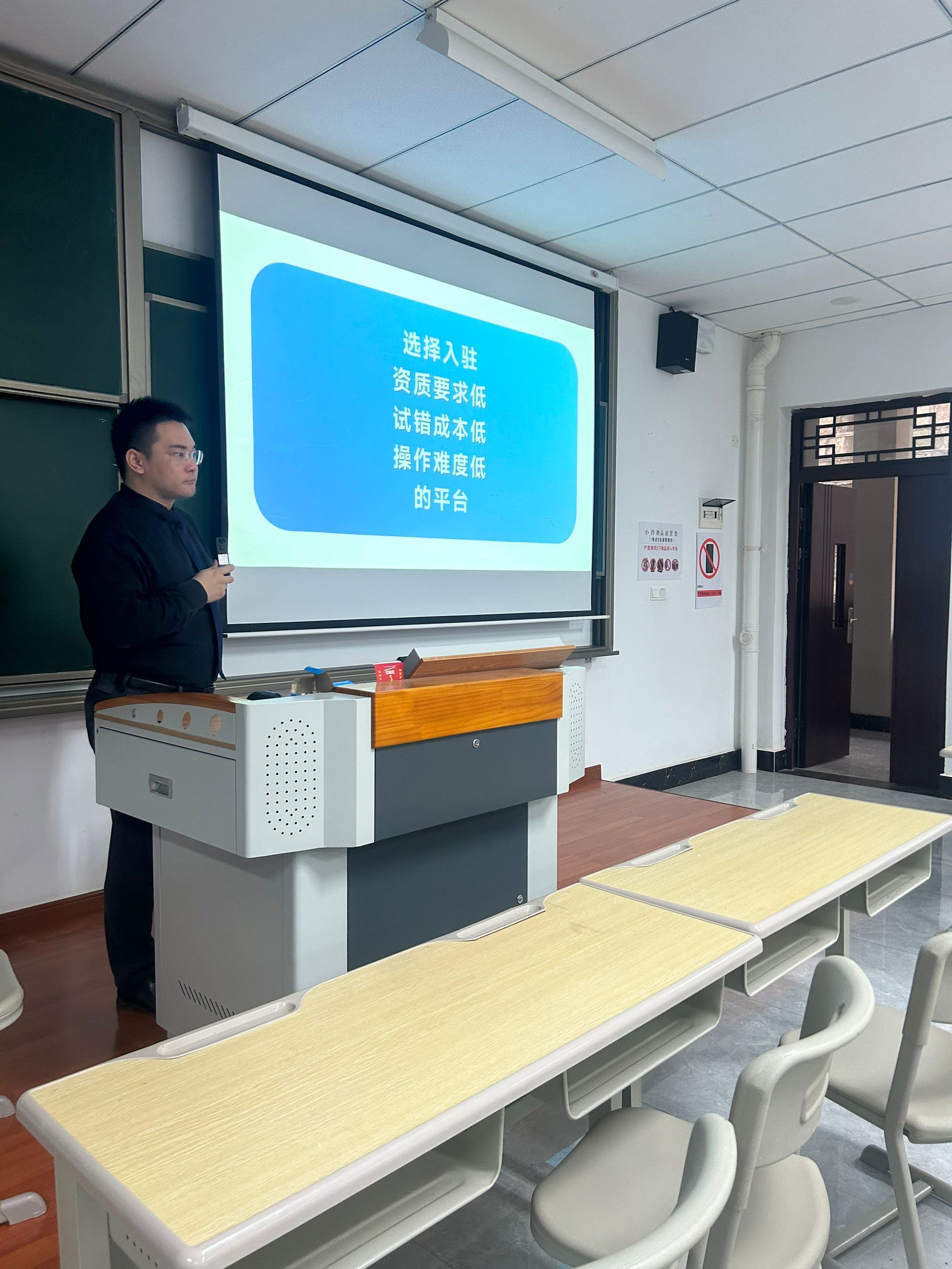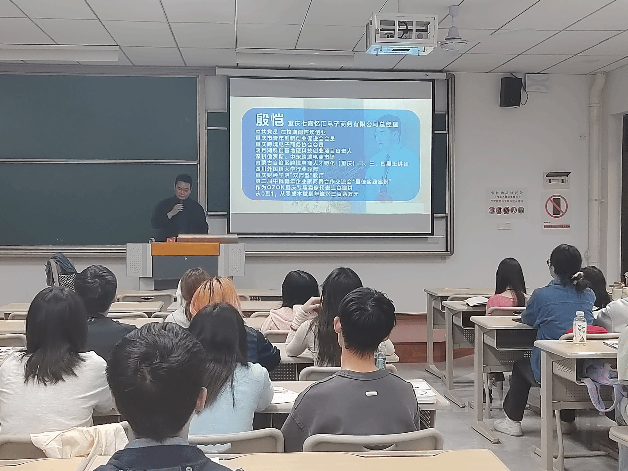 4月21日,数字经济与信息管理学院在勤者楼101成功举办“数智汇”第37期专家进课堂活动。本次活动特邀重庆七嘉忆汇电子商务有限公司总经理、明月湖科创基地硬科技创业项目负责人殷恺担任主讲嘉宾,以“探索学科竞赛、项目思维、团队协作、创新创业与职业规划的无尽可能”为主题,为2022级信息管理与信息系统专业全体学生带来了一场理论与实践深度融合的精彩讲座。活动由信管教研室李罗蔓老师主持,现场学子热情高涨,全程沉浸于干货满满的分享与互动中。