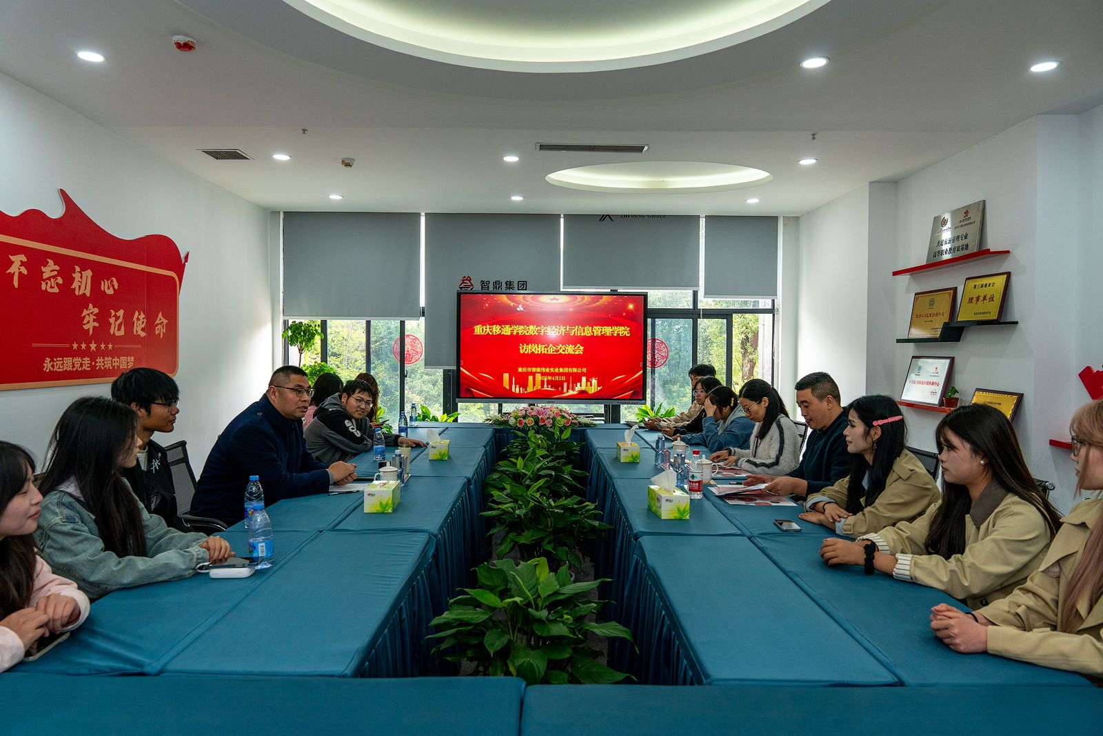 为深化产学研用合作,推动校企合作创新升级,增强双方的认知度和发展方向。2025年4月2日下午2点,重庆移通学院数字经济与信息管理学院数字经济教研室主任陈明燕、数字经济专业负责人乔兴刚及学生代表一行前往重庆市智鼎伟业实业集团公司开展访企交流活动。