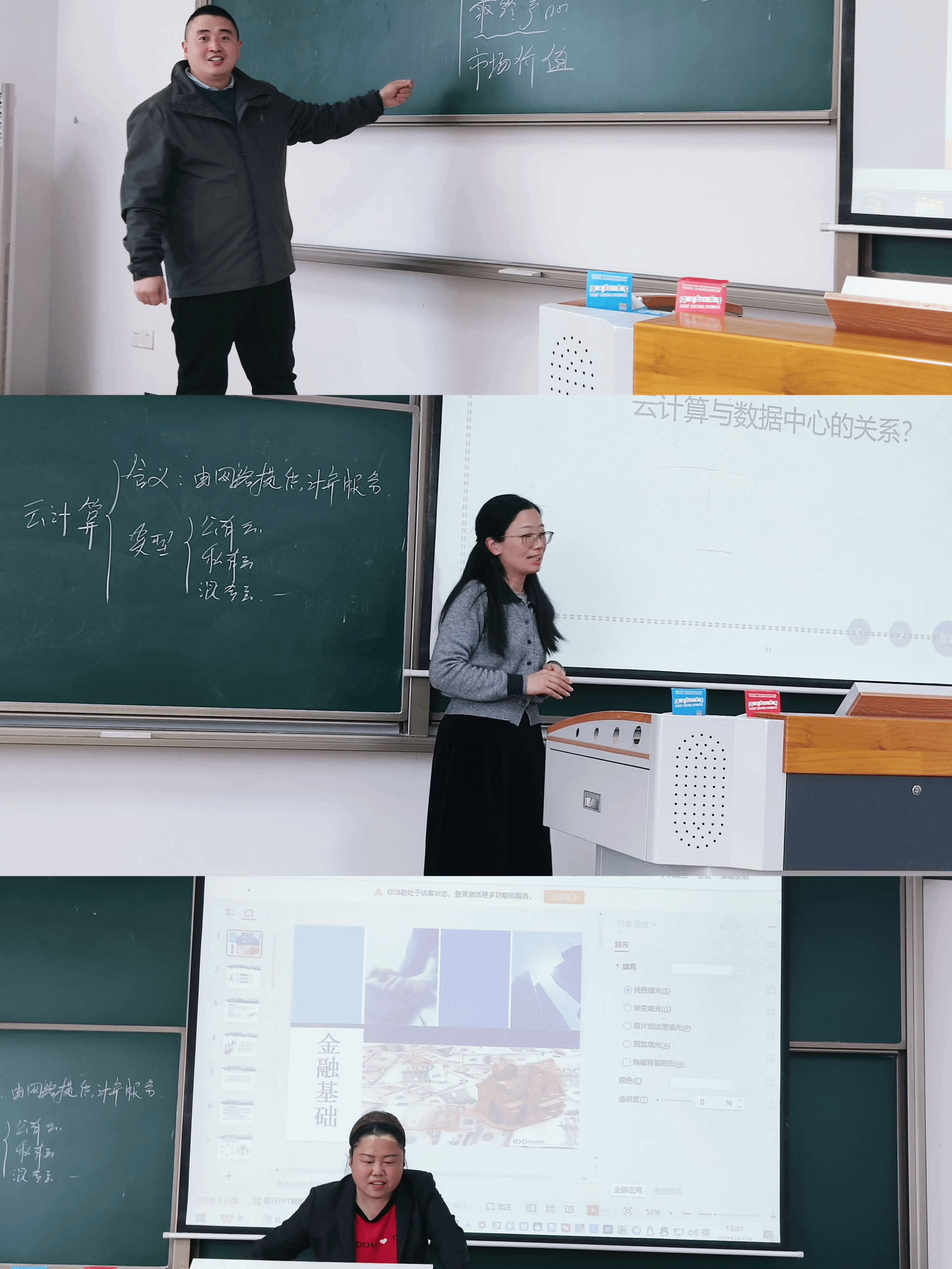本次集体磨课对象为乔兴刚、陈明燕、李娇三位老师。乔兴刚老师的《经济学原理》授课展示,以地区经济案例为切入点,采用“问题驱动+互动对话”的方式,将抽象的GDP概念转化为具体现象,课堂生动活泼且严谨有序,展现了经济学教学的生活化叙事特点。陈明燕老师的《数字经济概论》授课展示,通过“问题导入+生活化案例”,结合“学习通”平台,利用投票、弹幕等功能实时反馈,借助豆包进行趣味互动,穿插行业案例视频,使抽象技术具象化,教学互动性强,效果显著。李娇老师的《金融学》授课展示,以真实金融案例导入,通过“创业创新”情境引发学生思考,课程脉络清晰,从历史到现代层层递进,将抽象金融知识转化为生动叙事,展现了金融教学的情境化与思辨性。