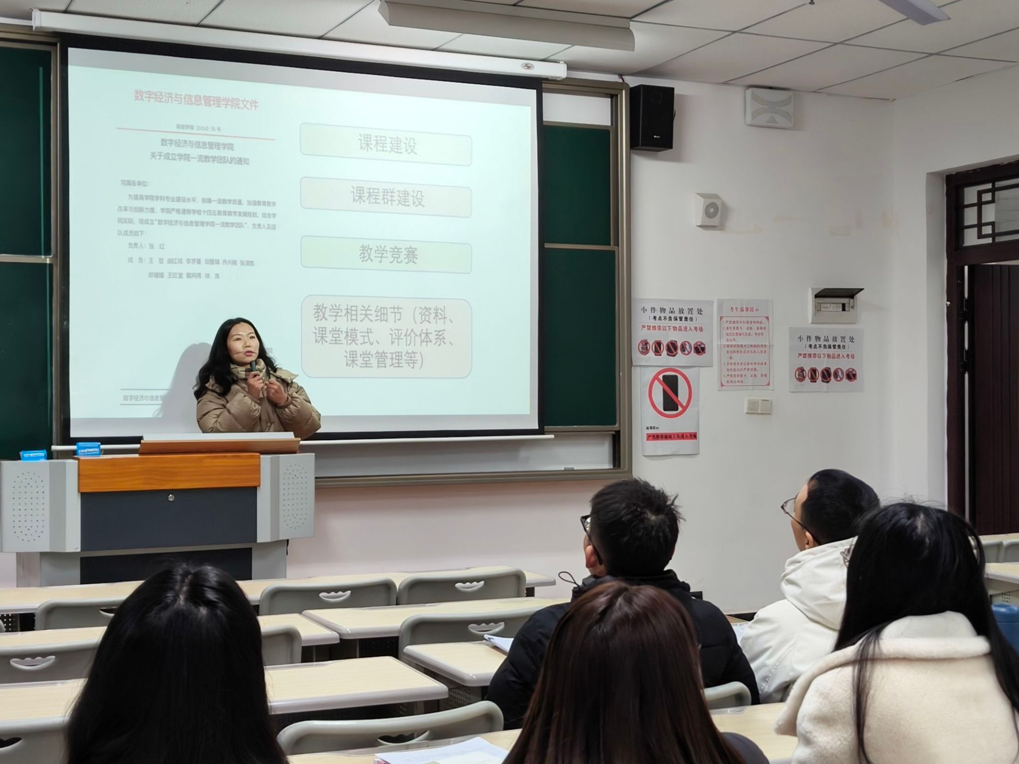为更好助力团队中青年教师,在新学期的青教赛及课程思政教学竞赛中,取得优异成绩,2月26日下午17:00,一流教学团队的老师们,在仁者楼408教室,共同深入探讨教学竞赛突围路径。张红老师从国家级、市级、校级等不同教学竞赛类别,依托青教赛、创新教学大赛、课程思政大赛、混合式教学设计大赛等,结合自己的参赛经历及感悟,详细解读了各类竞赛的赛制、参赛材料准备、竞赛现场表达等内容。并与老师们针对参赛知识点的选择、课程思政融入、授课方式呈现、学生互动、线上平台使用等内容做了深度交流,为老师们提供了详尽的资料准备建议及丰富的教学资源提示。