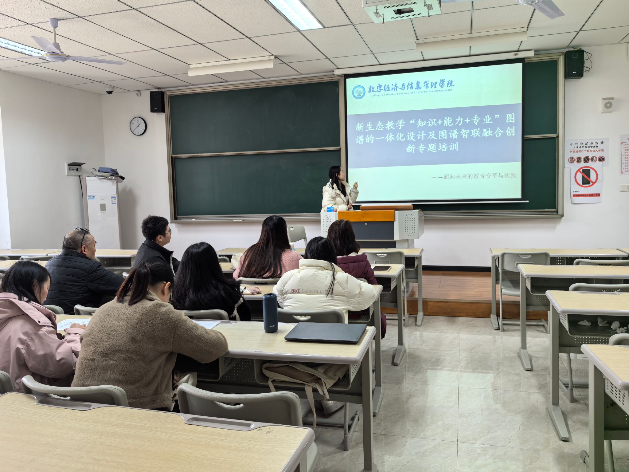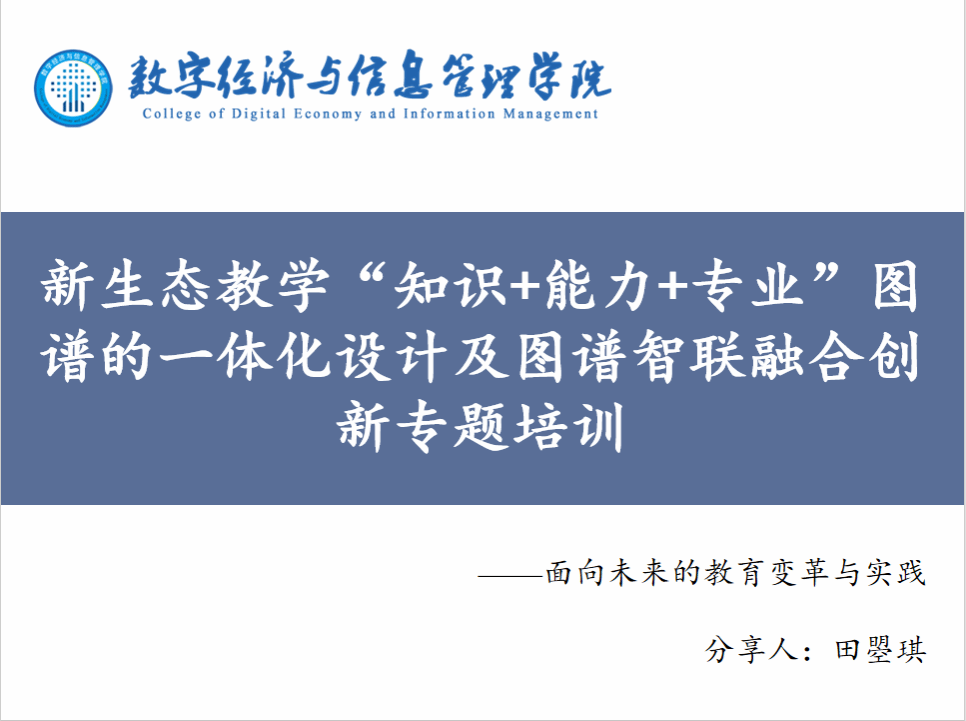 田老师在教师培训分享会中表明:此次培训旨在剖析知识图谱和数智技术在高校教学领域的应用,推动教学创新和专业建设协同发展。实现数智融合的新范式在于认清教学的底层逻辑,并思考如何在课程建设中实现问题导向和思政引导的教学创新。