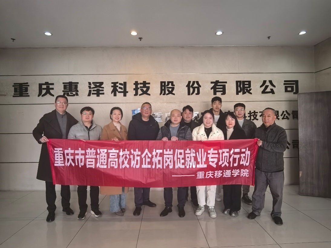 为贯彻落实 《重庆移通学院关于开展书记校长访企拓岗促就业专项行动方案的通知》(移通〔2024〕98号)精神,根据“访企拓岗”促就业专项行动工作部署,深入了解企业需求,挖掘实习就业岗位,为毕业生争取更多就业机会,全力促进毕业生更加充分更高质量就业。2025年3月7日,重庆移通学院数字经济与信息管理学院院长刘贵容、大数据院长潘显兵带队,携同教学副院长王哲,工程管理教研室骨干教师王华、杨礼静,辅导员任超群、罗德康及优秀学生代表,前往重庆惠泽科技股份有限公司,开展了访企拓岗和调研交流活动。