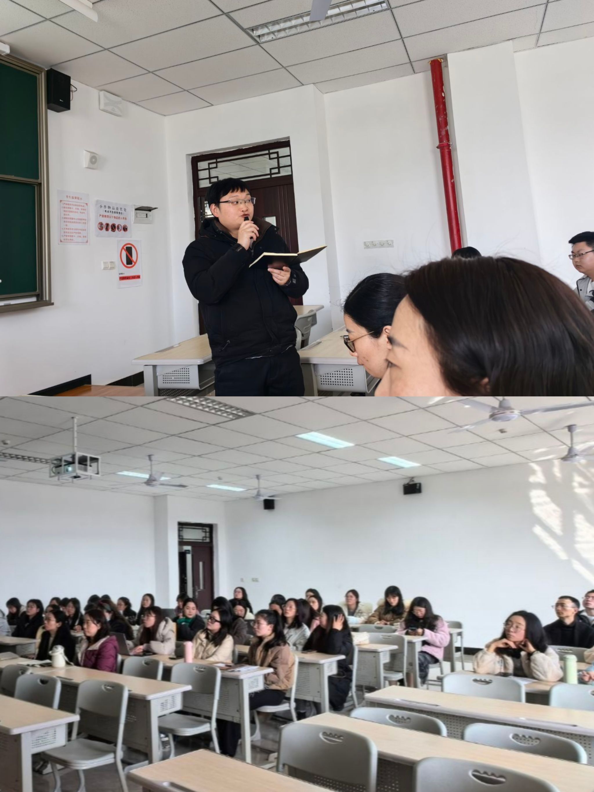 随后,教学副院长王哲强调,教师要立足岗位,精心备课,提升教学质量。同时,要深入理解并积极践行学校的 “四位一体双院制 + 特色教育” 培养模式,将思想政治教育融入日常教学,增强为党育人、为国育才的使命感。此外,教师还需严格遵守学校规章制度,积极参与学院活动,在团队协作中勇于创新,营造良好的学院氛围。