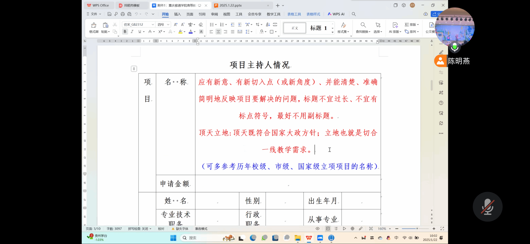 会议伊始,数字经济教研室主任陈明燕结合校级教改项目立项申请书,为与会教师进行了详细的指导。陈老师从项目名称的设定开始,逐一分析了项目主持人情况、现状与背景分析(包括已有研究实践基础)、研究内容、目标、要解决的教学问题、拟采取的方法和主要特色、预期效果与具体成果等各个环节的填写要点。她特别强调了申报书应图文并茂,通过图形展示项目的研究内容和思路,以提高阅读的直观性和理解度。