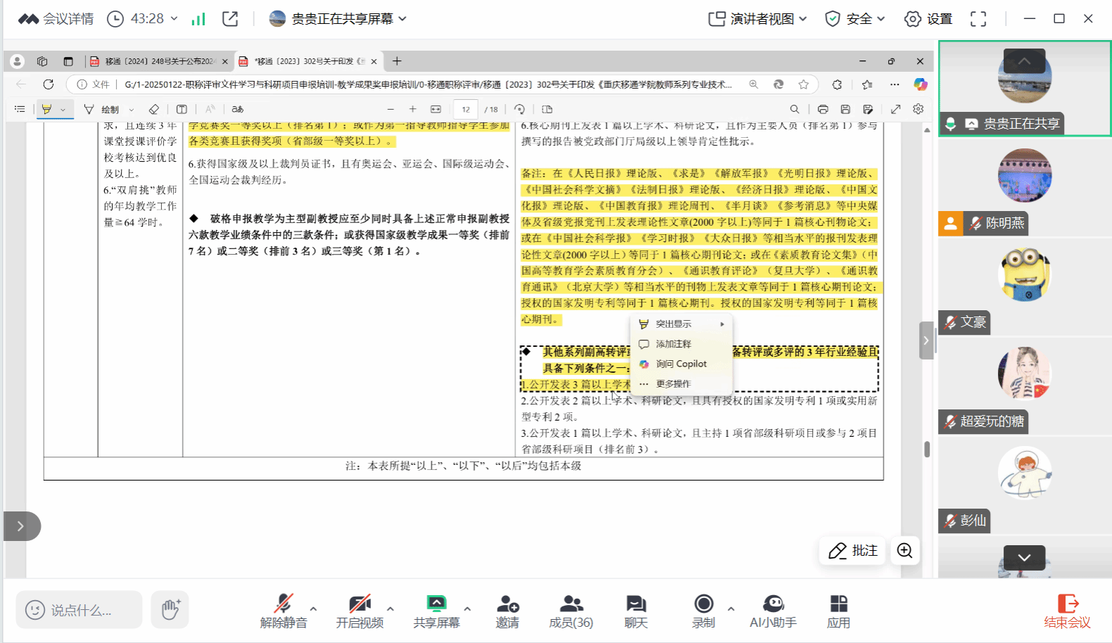 在会议的后半部分,刘贵容院长详细解读了《重庆移通学院教师系列专业技术职务任职资格申报评审细则(试行)》,重点对教授、副教授序列的评审条件进行了详细阐述。她通过实际案例,帮助教师们理解评审标准,明确自己的发展目标,并强调在职称评审过程中,应注重积累教学科研成果,提升个人综合素质。