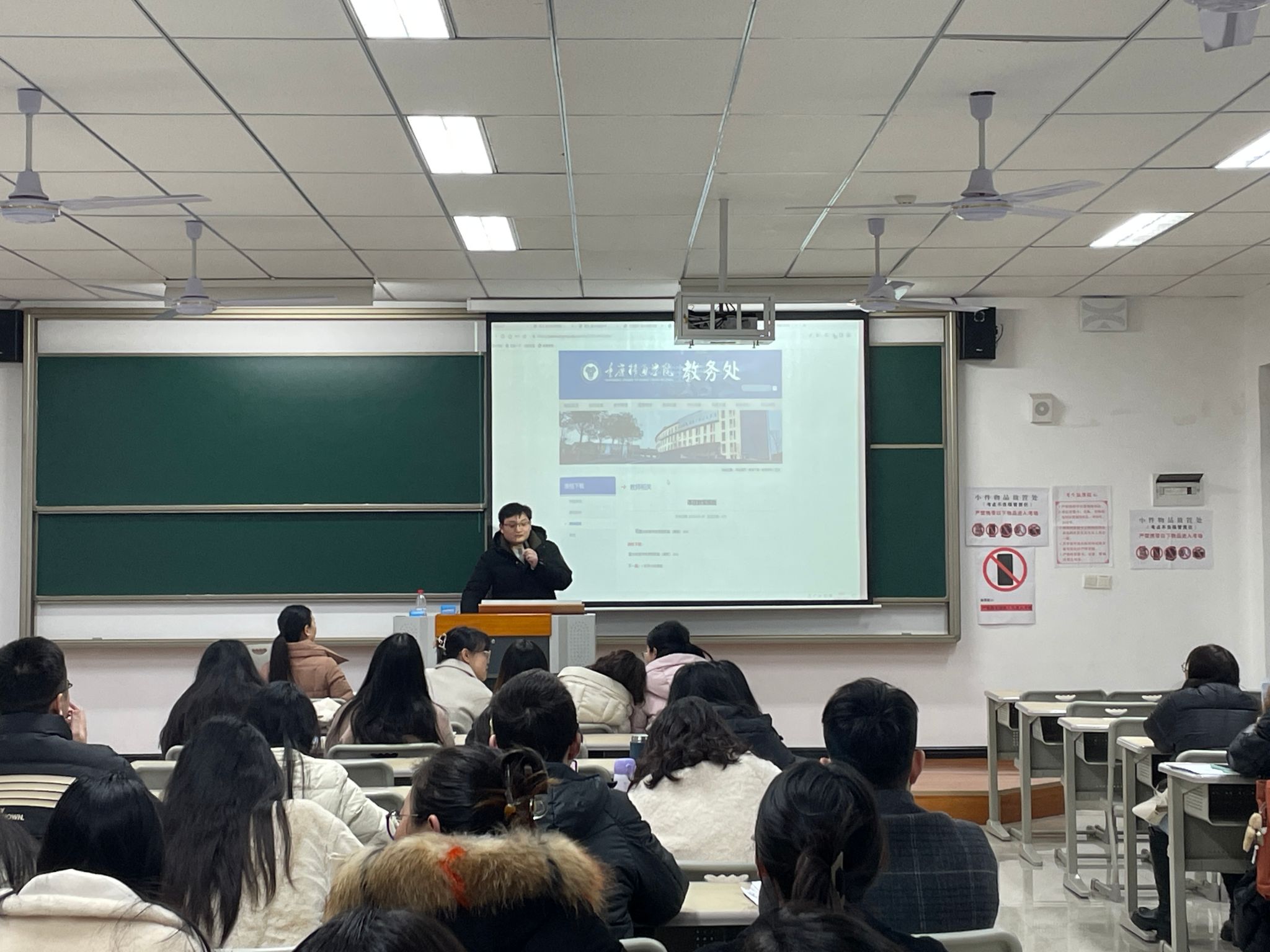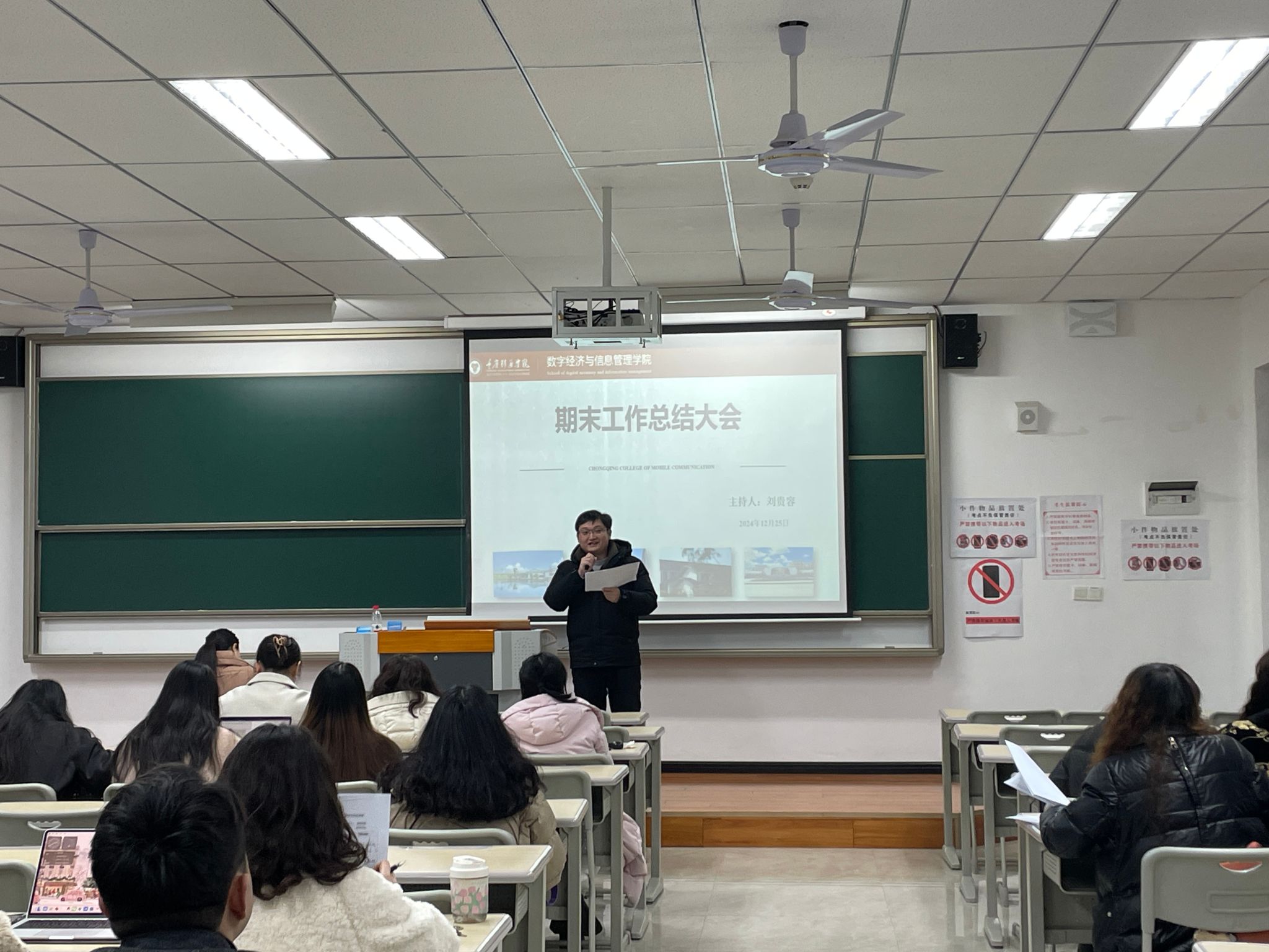 为统一思想、凝聚力量,确保期末各项教学工作顺利进行,为本学期画上一个完美的句号,2024年12月25日下午14:30,数字经济与信息管理学院期末工作总结大会在綦江校区仁者楼403召开,共同为学期末各项工作的扎实推进谋篇布局。此次大会由数字经济与信息管理学院刘贵容院长主持,全体教职工参加。