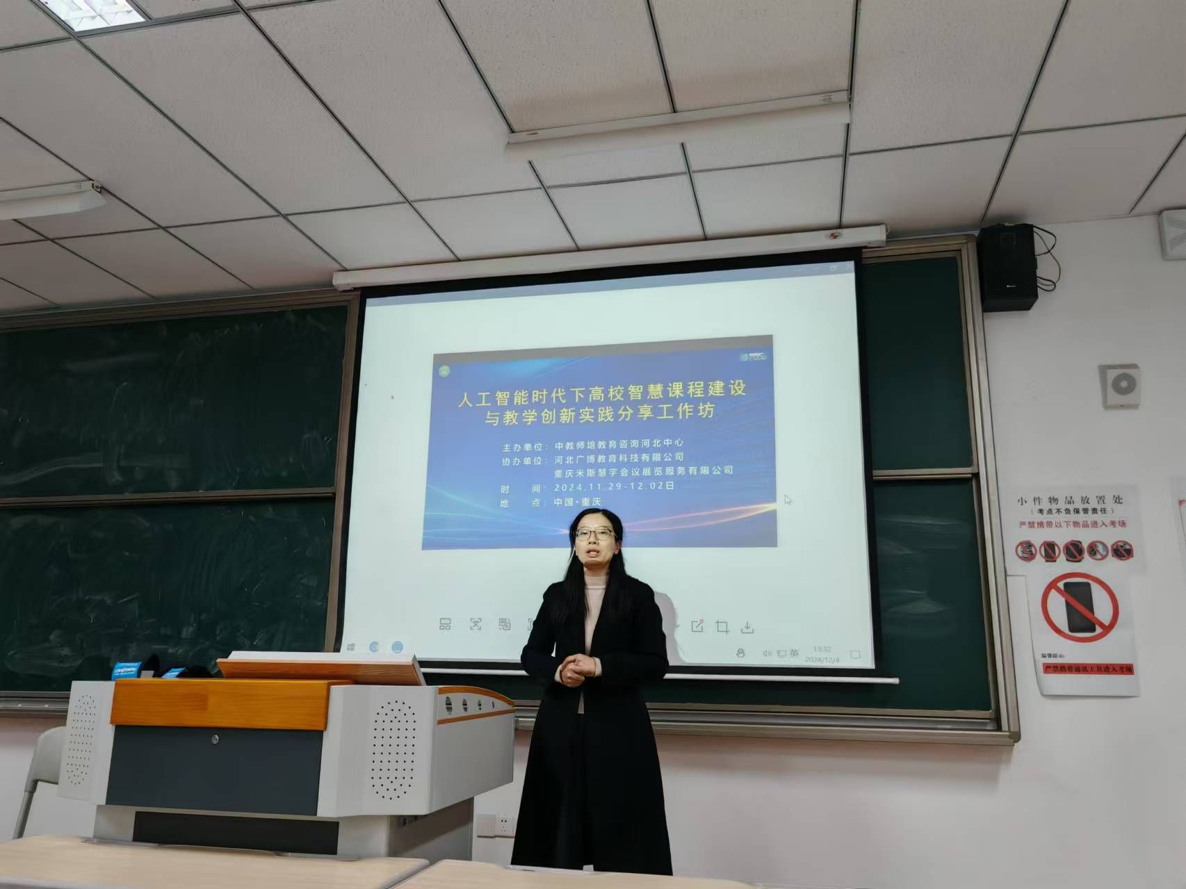 分享会上,三位老师结合实际工作,深入浅出讲解新时代数字经济、金融科技课程/学科建设与人才培养特征及当前教学工作启示。陈明燕老师分享人工智能时代下高校智慧课程建设与教学创新实践,启发老师打破传统教学的束缚,强化人工智能与教育的深度融合能力,合理运用AI、知识图谱等智能工具赋能教学。