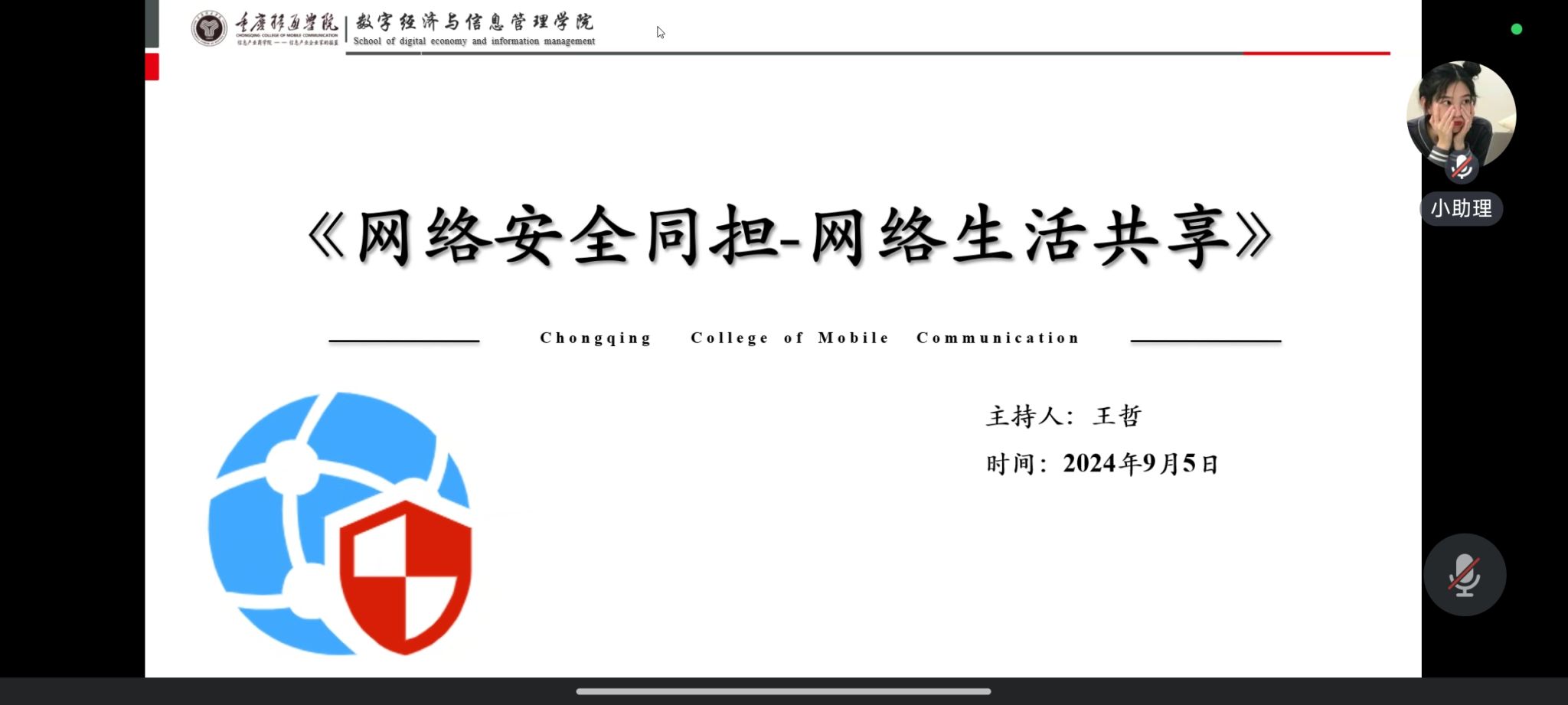 2024年9月5日下午14点,数字经济与信息管理学院通过腾讯会议开展了网络安全培训会,此次培训由教学副院长王哲副教授主持,学院全体教职工参加。