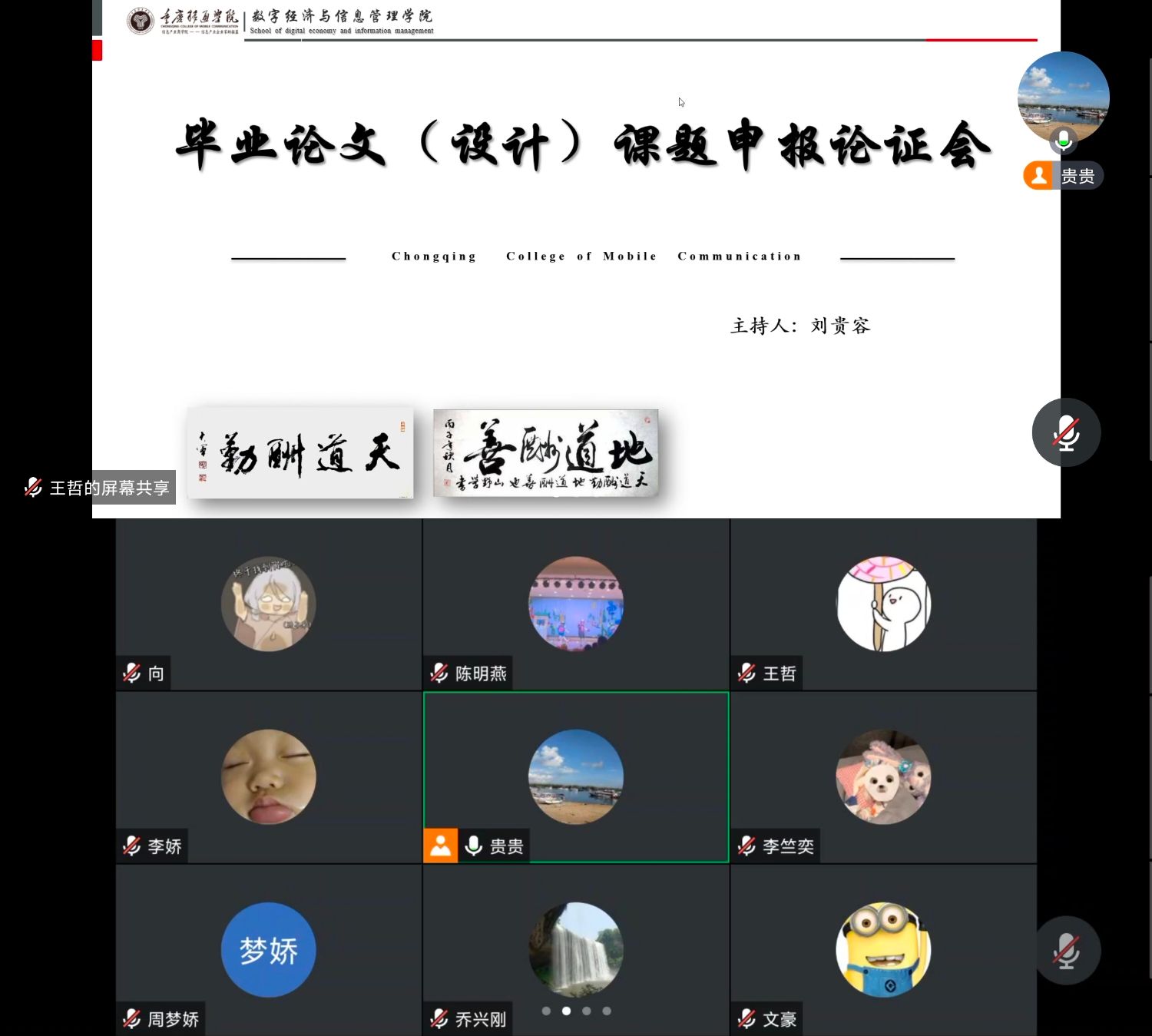 毕业论文(设计)作为本科教育阶段的重要教学环节,不仅是对学生专业知识综合运用能力的全面检验,也是培养其独立研究能力与创新思维的关键环节。为保证其学术规范与专业要求,2024年9月4日上午11:00,数字经济与信息管理学院召开2025届毕业论文(设计)选题论证会,对选题的新颖性、可行性、研究价值及预期成果等多方面进行细致分析与讨论。本次论证会邀请到了淬炼商学院陈晓曼副院长和大数据学院吕云山副院长和学院院长刘贵容、教学副院长王哲、教研室主任、专业建设负责人、课程团队负责人一起参与论证,本次会议由院长刘贵容主持。