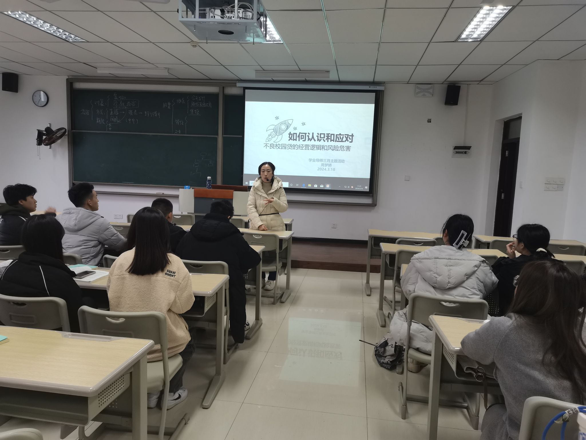 2024年3月19日下午两点,李倩老师在九教开展学业指导活动,向2023级资产评估专升本1班的各位同学深入剖析了校园贷诈骗的常见手段和特征,提醒同学们要保持清醒头脑,增强自我保护意识,树立正确的消费观念,不要盲目跟风和过度消费,切勿轻信陌生人的诱惑,不要随意泄露个人信息,更不要轻易签订贷款合同,从根本上预防校园贷诈骗的发生。通过此次的讲解和宣传,同学们纷纷表示对校园贷诈骗有了更深刻的认识,也掌握了更多的防范技巧,明白要学会识别真伪信息,遇到可疑情况要及时报警。