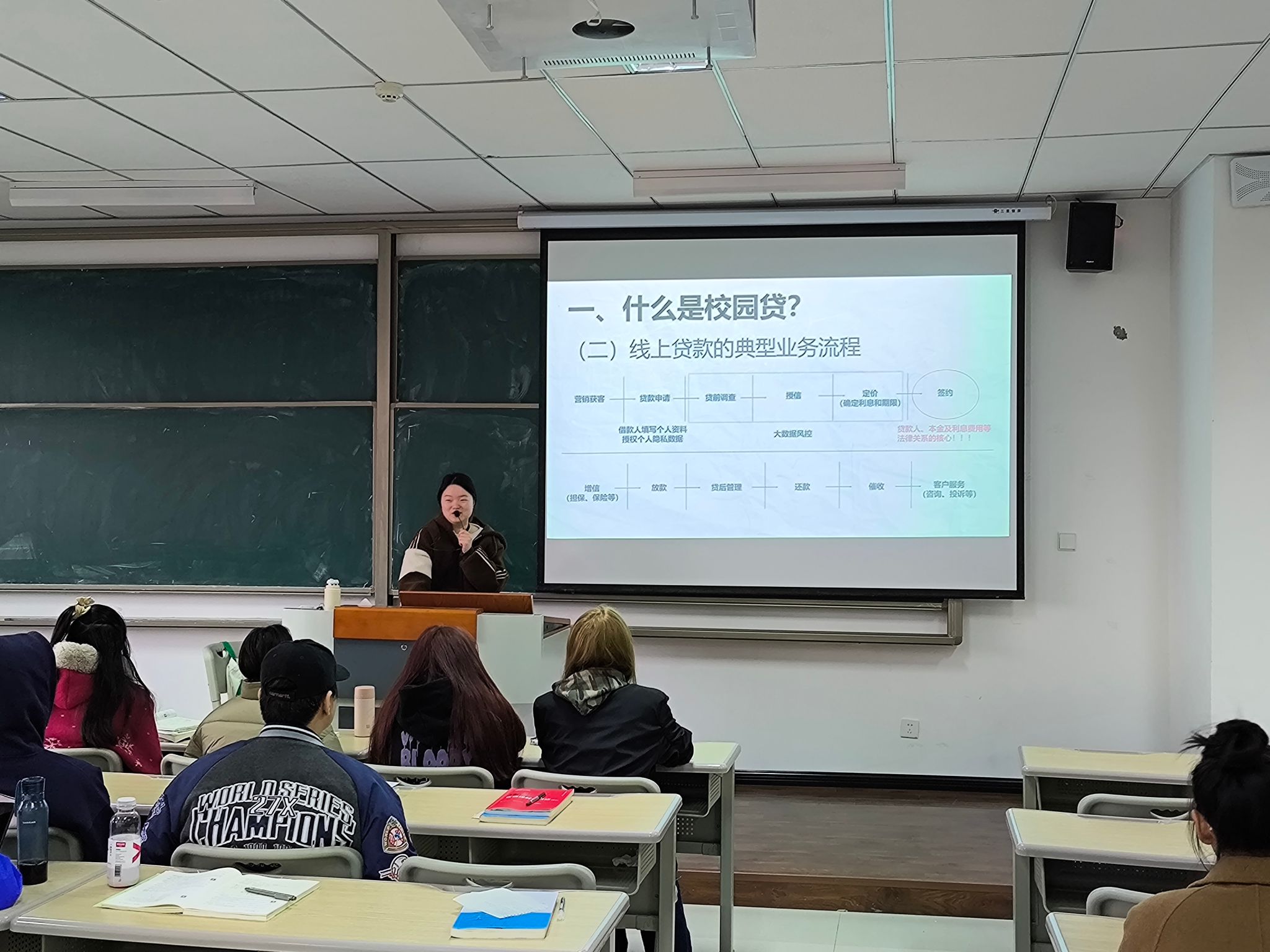 2024年3月18日中午,数字经济与信息管理学院学业导师周梦娇老师与2023级工程管理专升本13班的同学于9313开展了特色学业导师活动。活动的主题是开学第一课安全教育之校园贷。周老师主要从校园贷的含义、危害、治理和应对等方面介绍了校园贷究竟有哪些危害,以及该怎样应对,如何去深刻的起理解认识并且能够有效的去向身边的老师和同学宣传这些危害。