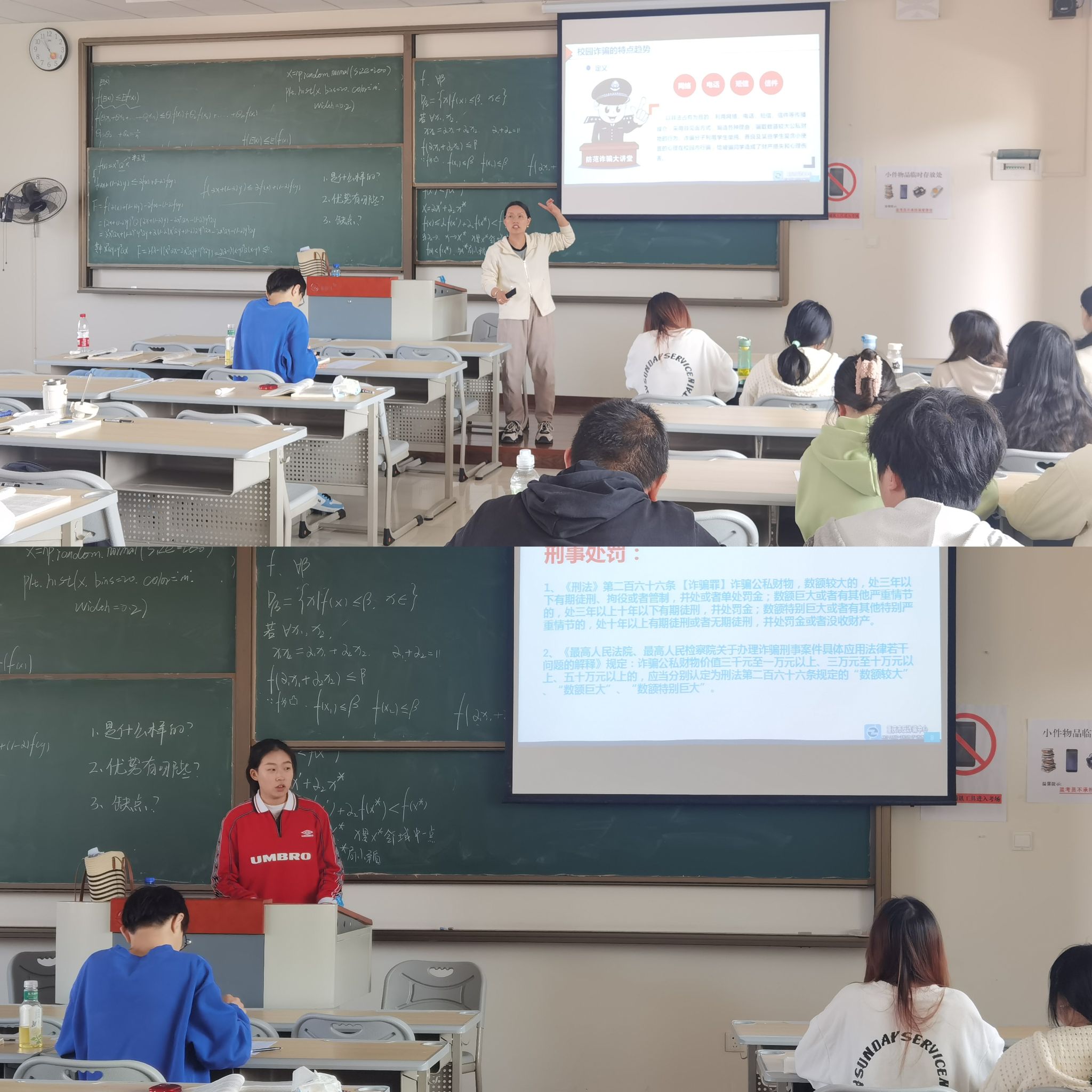 2024年3月21日,蒋仁莲老师在9206给2021级工程管理1班和远景学院工程管理1班开展了反诈宣传教育活动。意在提醒学生要树立正确的防范观念,切勿贪图小利,不要相信所谓的“内幕消息”或“高额回报”等陷阱。
