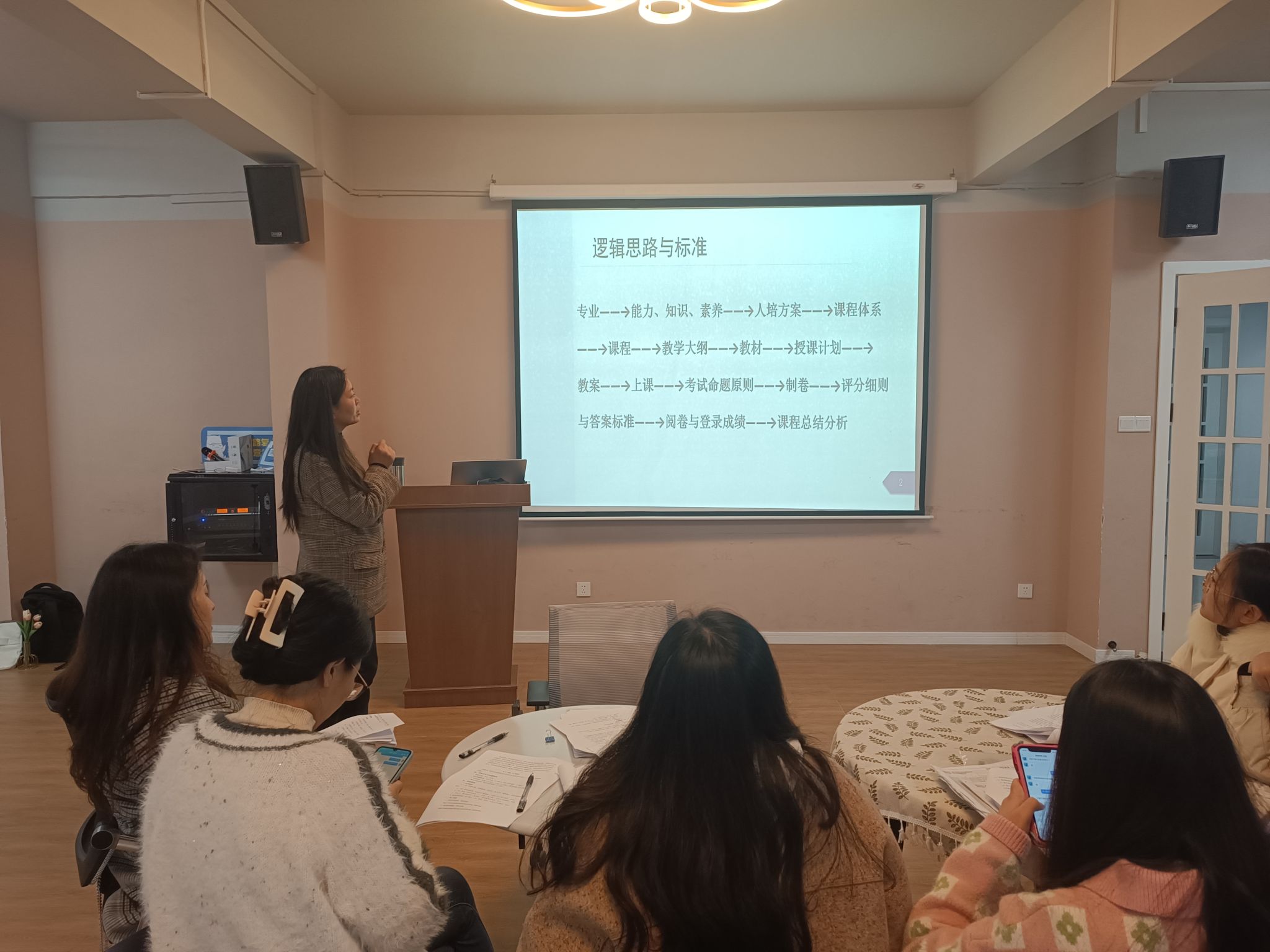 刘院长又带领大家认真学习《关于开展教学资料自查暨优秀课程教学大纲、优秀教案评选工作的通知》《移通教〔2022〕11号重庆移通学院教务处关于印发《关于制(修)订课程教学大纲的指导意见》的通知》,对教学大纲、授课计划、教案的规范性问题进行了研讨。刘院长从专业教育人才培养目标到最终的课程教学结束,提出了16步逻辑思路与标准:从专业建设及其人才培养目标出发,针对学生应具备的能力、知识、素养,制定出适合学生发展的培养方案,培养方案又由课程体系和具体的课程组成,由课程才有教学大纲和后续的各类教学环节和教学资料,每一个教学环节和教学资料都具备一脉相承的逻辑性和统一性。