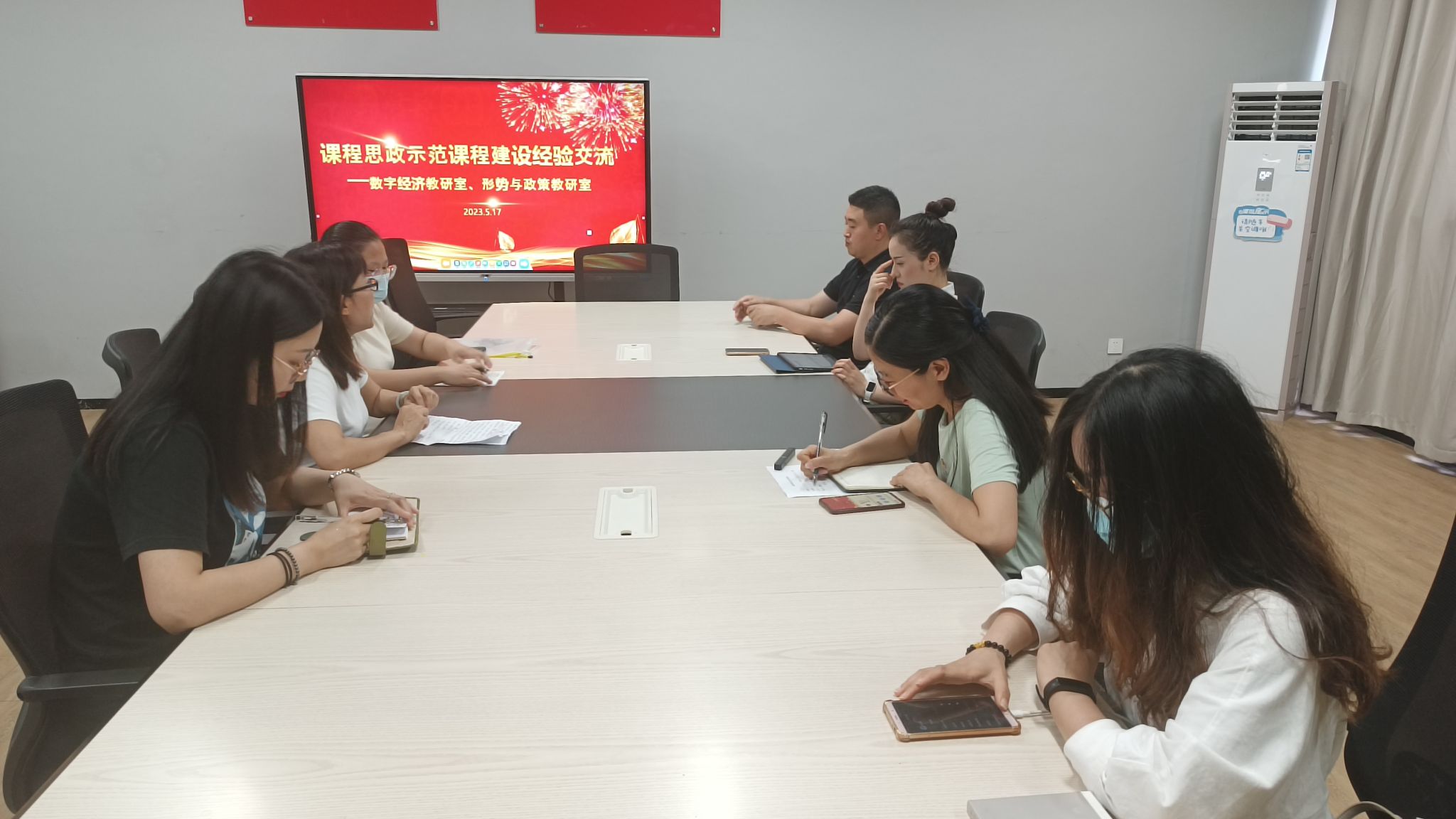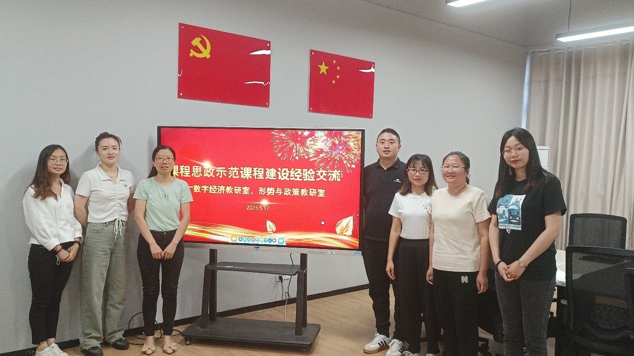 为促进思政教育与专业课程的融合,5月17日下午四点,在横山书院党团活动室,数字经济与信息管理学院数字经济教研室与马克思主义学院形势与政策教研室开展了课程思政示范课程建设经验交流会。本次会议邀请了形势与政策教研室主任王郡,形势与政策教研室专任教师罗娅、简云丹进行专业课程与思政的课程融合探讨。活动由数字经济教研室主任陈明燕老师主持,数字经济教研室专任教师乔兴刚、冉叶虹、张菡参加了本次会议。