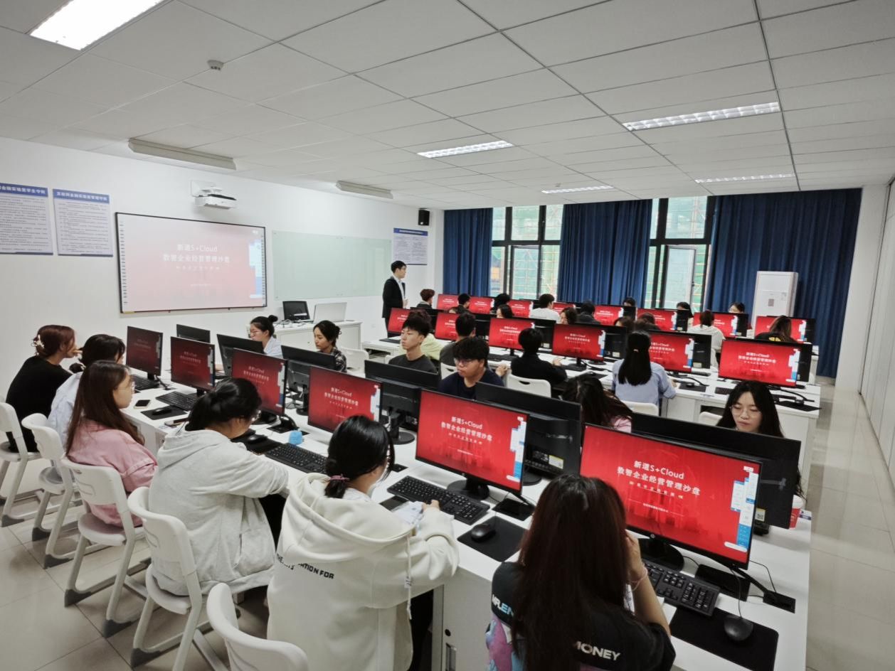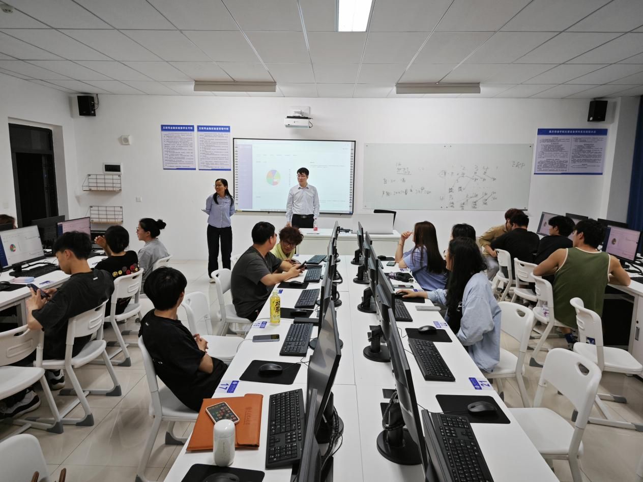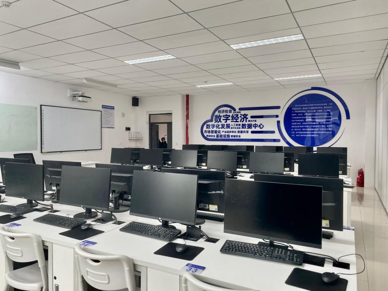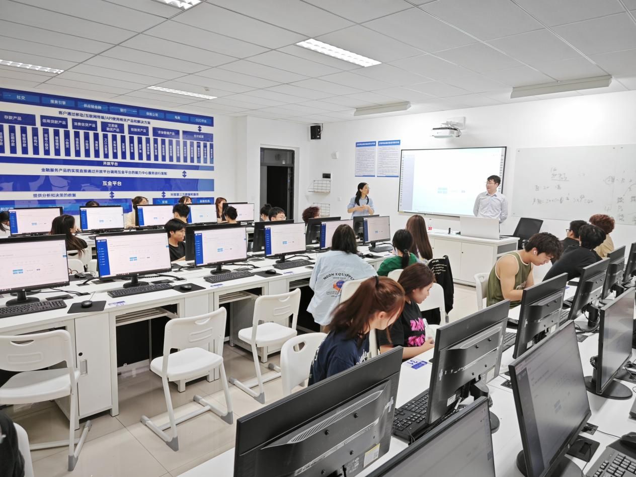 中心占地面积约320平方米,有164台高性能计算机,能同时容纳160名学生学习。学生们在这里学习数字经济的理论与实践,培养数字化经营管理的能力。实验中心搭载了宏微观经济学综合实训教学软件、数字人民币实训软件、数智企业经营管理沙盘、数智工厂实践教学平台、区块链实训软件、智慧城市规划数字孪生实训平台系统等实验实训教学管理软件平台。