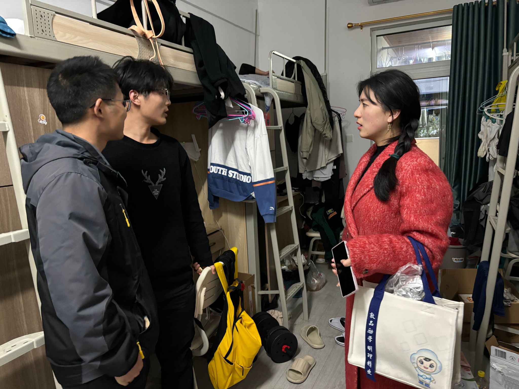 在关注宿舍安全的同时,李余导师也十分重视学生的生活状况。他与学生们亲切交谈,像朋友一样倾听他们在生活和学习中遇到的困难。有的学生提到最近课程难度较大,作业完成起来比较吃力,导致压力很大。针对这一情况,李余导师结合自身的学习经验,为学生提供了一些实用的学习方法和建议,鼓励他们制定合理的学习计划,遇到问题及时向老师和同学请教。还有学生反映宿舍卫生打扫存在分工不明确、导致卫生状况不佳的情况,李余导师便和同学们一起讨论,帮助他们重新明确了各自的卫生职责,让宿舍卫生问题得到妥善解决。