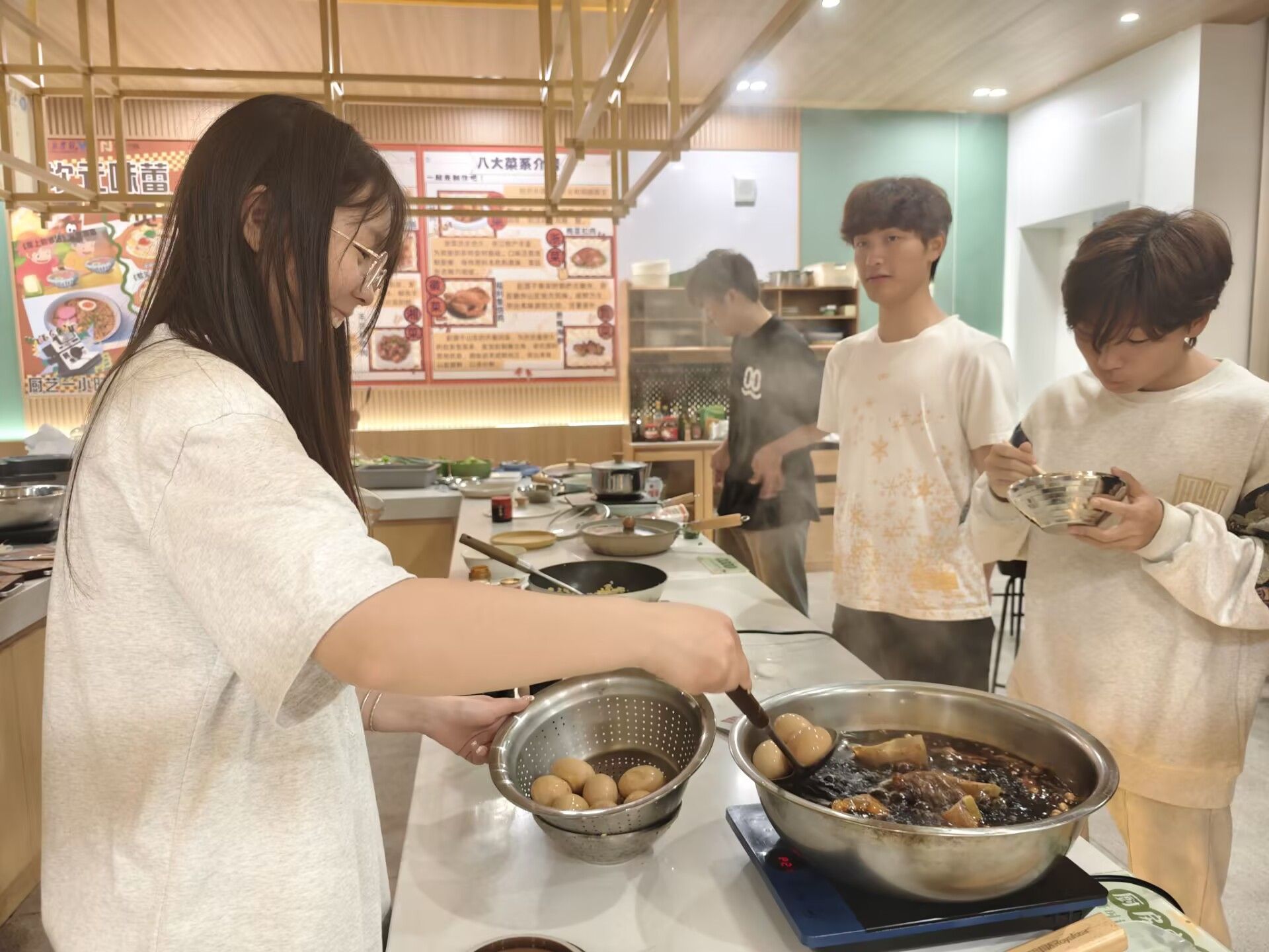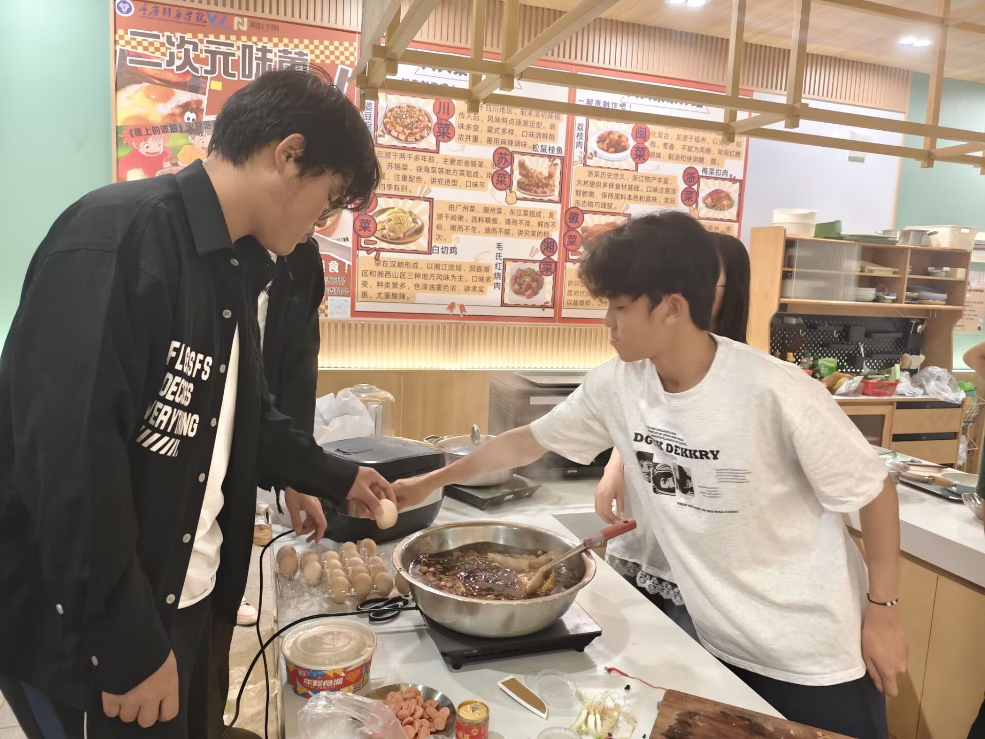 2025年4月9日,2024级大数据管理与应用5班在异科老师胡蓉老师与学委曾意 “隔空”的组织下,于南江书院笃行共享生活厨房开展了一场别具一格的校园活动。本次活动以“卤蛋”为引,一方面意在传承和弘扬中华美食文化,增强文化自信;另一方面也为加强同学和老师之间的交流搭建了一个良好的平台,也提高了同学们之间的团队协助意识和协作能力。