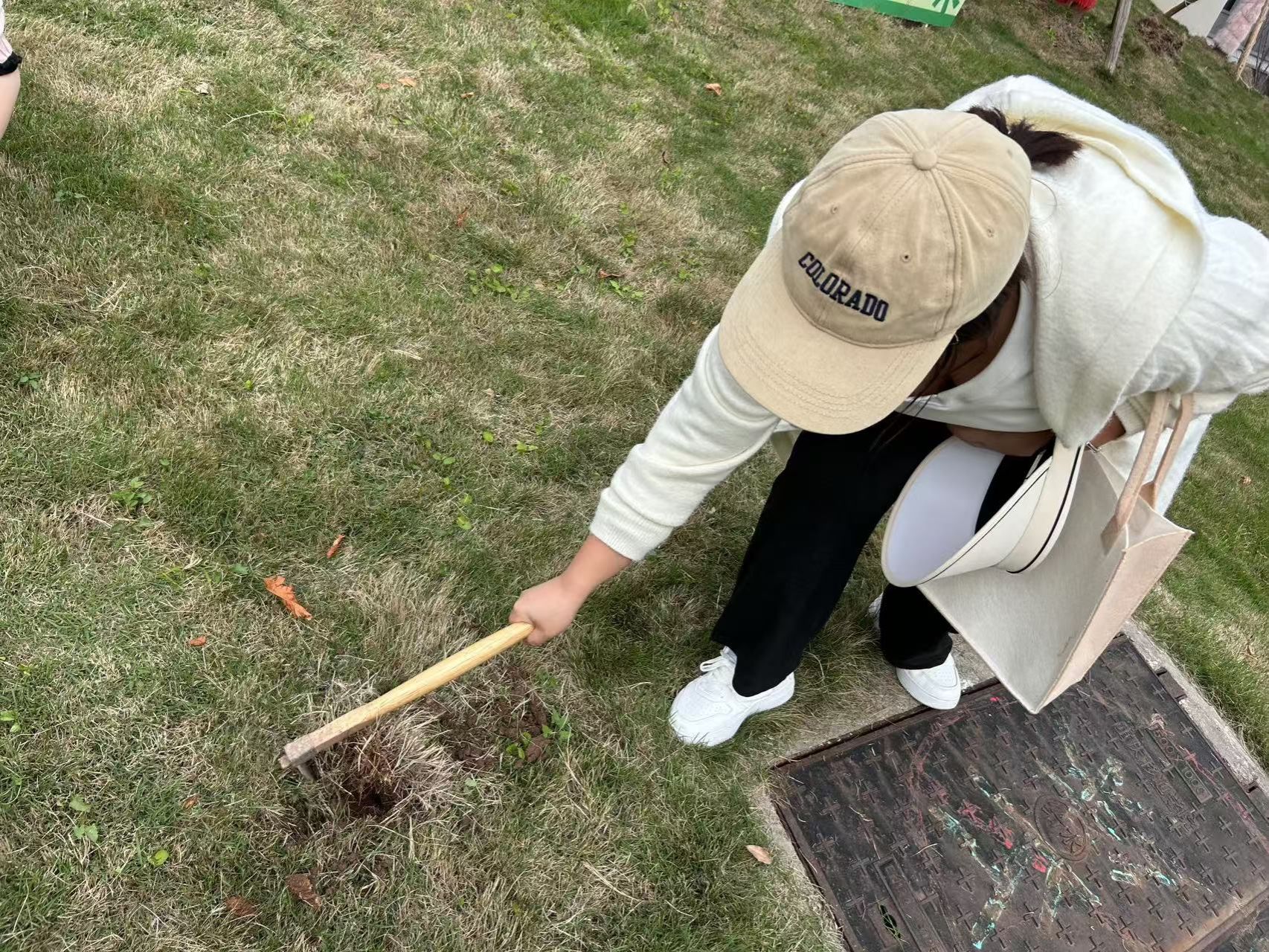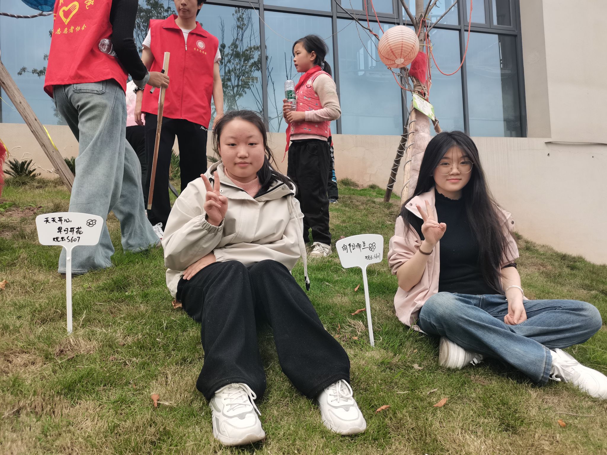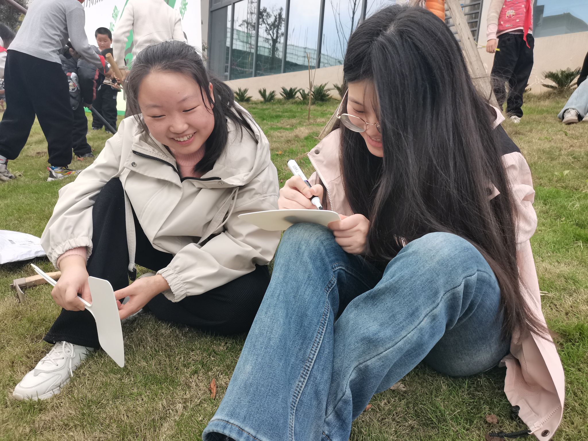 经过两个小时的努力,一颗颗种子被植入土壤,同学们乐在其中,他们亲手触摸着土壤,感受着生命的律动,仿佛在与大自然进行着一场无声的对话。同学们亲手制作并树立起写满美好期许的牌子,为这片充满希望的土地增添了独特的人文气息。这些牌子不仅标记了播种区域,更承载着同学们对未来的憧憬,成为校园里一道独特的风景线。