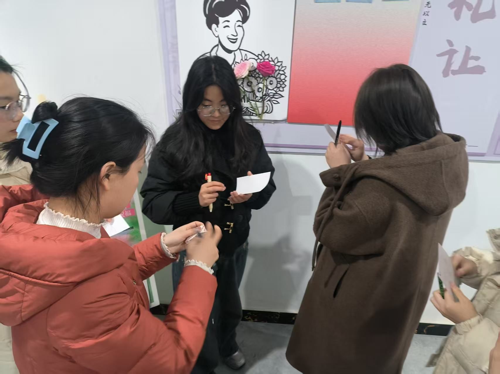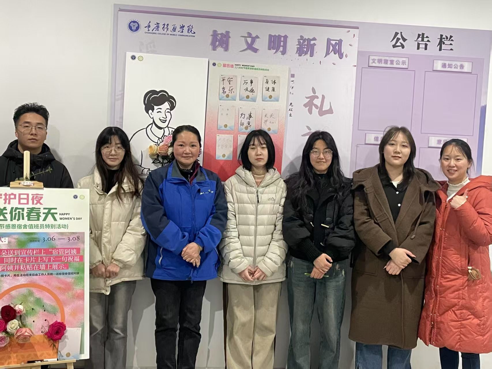 在三八国际妇女节这个温馨而美好的日子里,校园中处处洋溢着感恩与关爱的氛围。数字经济与信息管理学院的异科导师刘城联合信息安全学院的异科导师张棚,带领各自的异科班积极参与由学生处宿舍管理中心精心策划的【你守护日夜,我送你春天 —— 三八妇女节感恩值班员特别活动】,用实际行动为默默奉献的宿舍值班员们送上了最真挚的节日祝福。