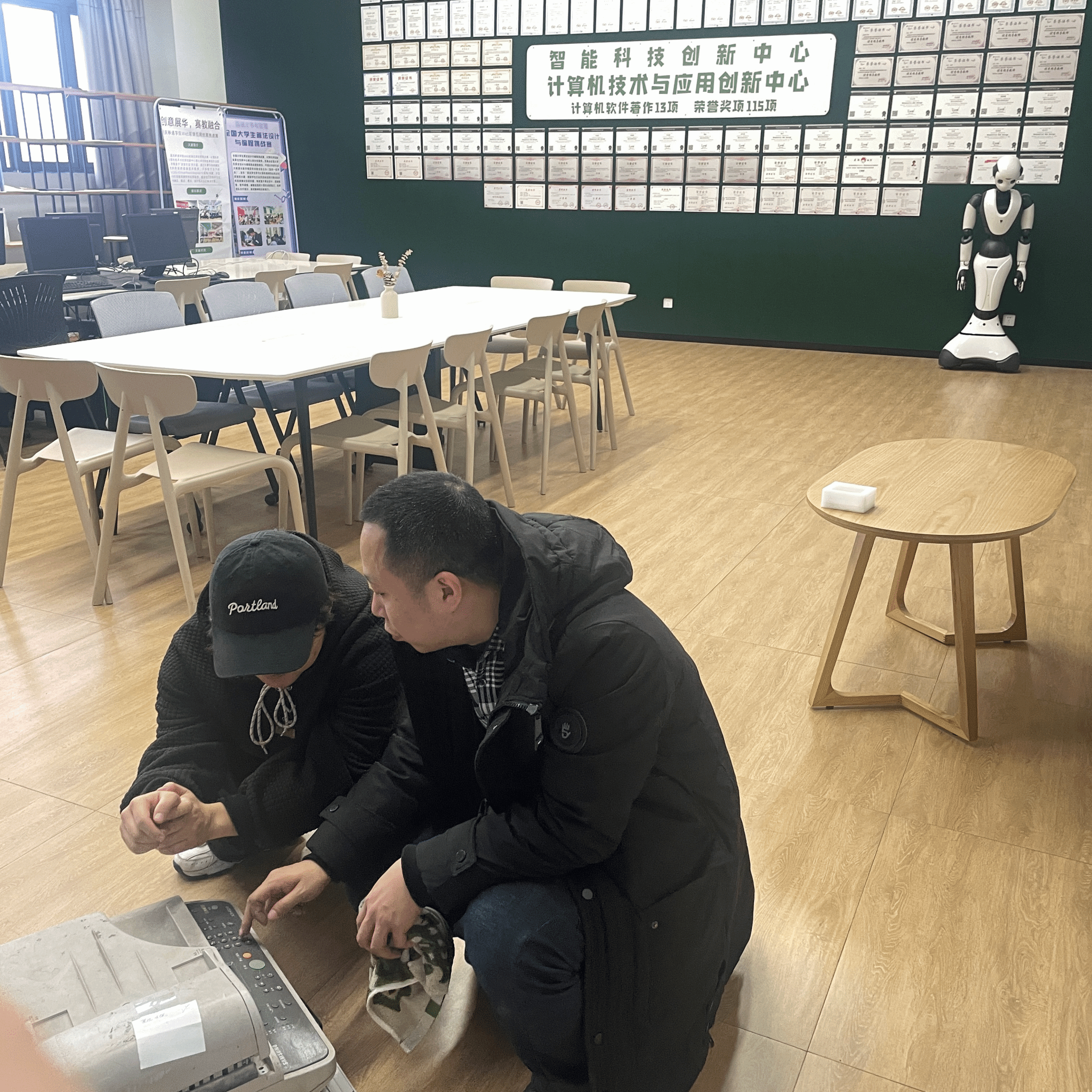 在春风和煦、阳光明媚的三月,异科导师李旎和徐政于2025年3月7日,带领志愿者学生参与创新中心的办公设备维护维修培训项目的筹备活动。活动地点从教师公寓到横山书院。此次活动不仅标志着完满活动在实践教学领域的又一次积极探索,更是一次展现学生志愿服务精神、增强团队合作能力的绝佳机会。在老师的精心策划与学生志愿者的热情参与下,这场筹备活动如同一股清新的春风,吹拂着每一位参与者的心田。