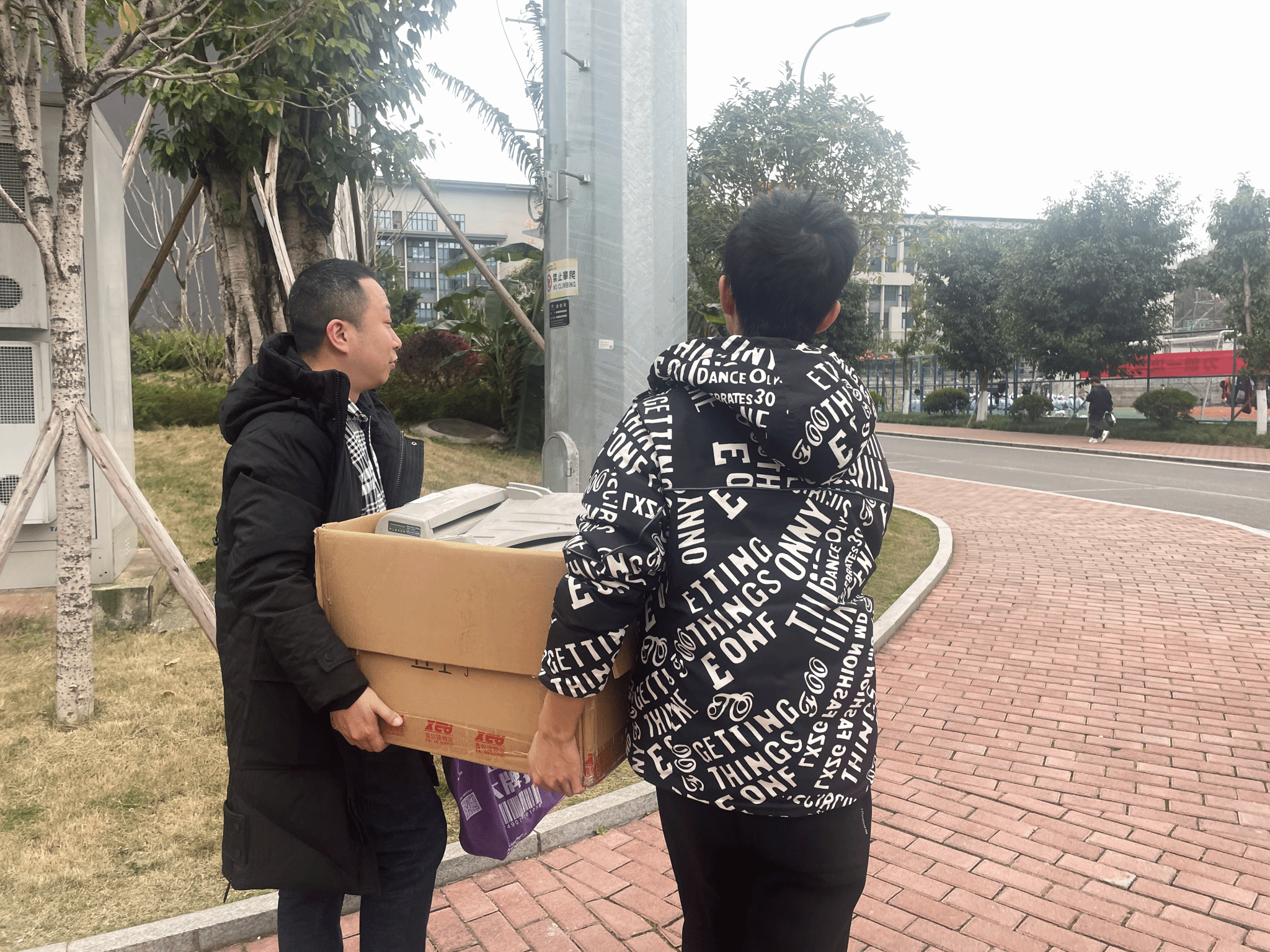 消息一出,学生们积极响应,纷纷报名加入志愿者行列。在徐政老师的带领下,一支由几位热心的学生志愿者组成的搬运小队迅速成立。为了确保搬运过程的安全与高效,李旎老师驾驶自己的私家车,作为运输工具。搬运工作正式开始,学生们分工明确,有的负责拆卸打印机,有的负责搬运重物,还有的负责装车与卸货。虽然过程中不乏艰辛,但大家始终保持着高昂的斗志与乐观的态度。在老师的悉心指导下,搬运工作有条不紊地进行着,最终,所有报废的打印机和耗材都被安全、完整地搬运到了创新中心。