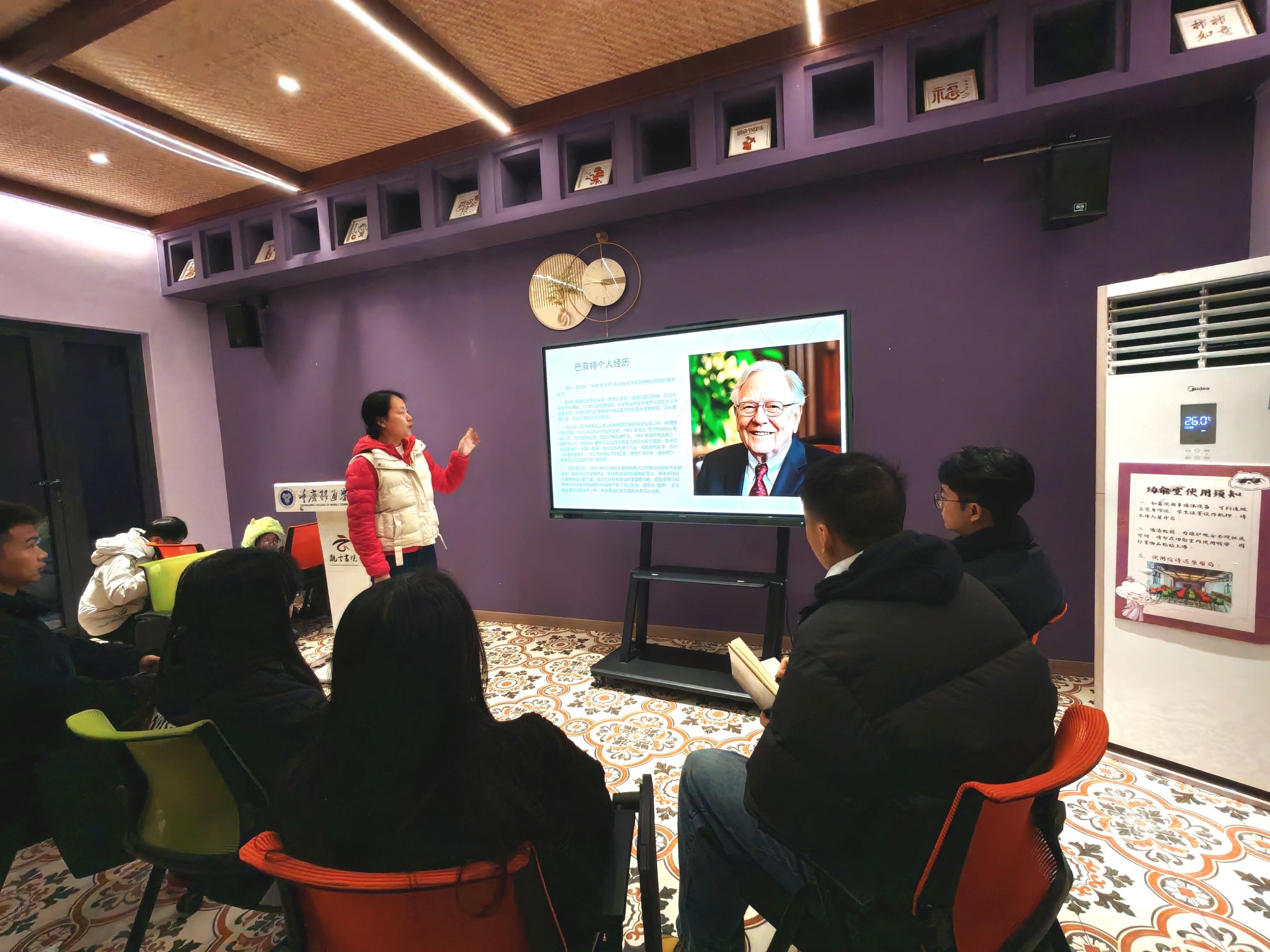 在金融的浩瀚星空中,有一颗最为璀璨的巨星--沃伦・巴菲特。2024年12月19日18:00,刘城老师带领异科班的同学,在观云书院芒种・华文书吧开展了以“金融传奇再现,领袖人生探索”为主题的大咖阅读分享会,和同学们一起感受投资大师沃伦・巴菲特的传奇人生与投资智慧,切实提升同学们的思维能力,并能从中学习榜样的力量。