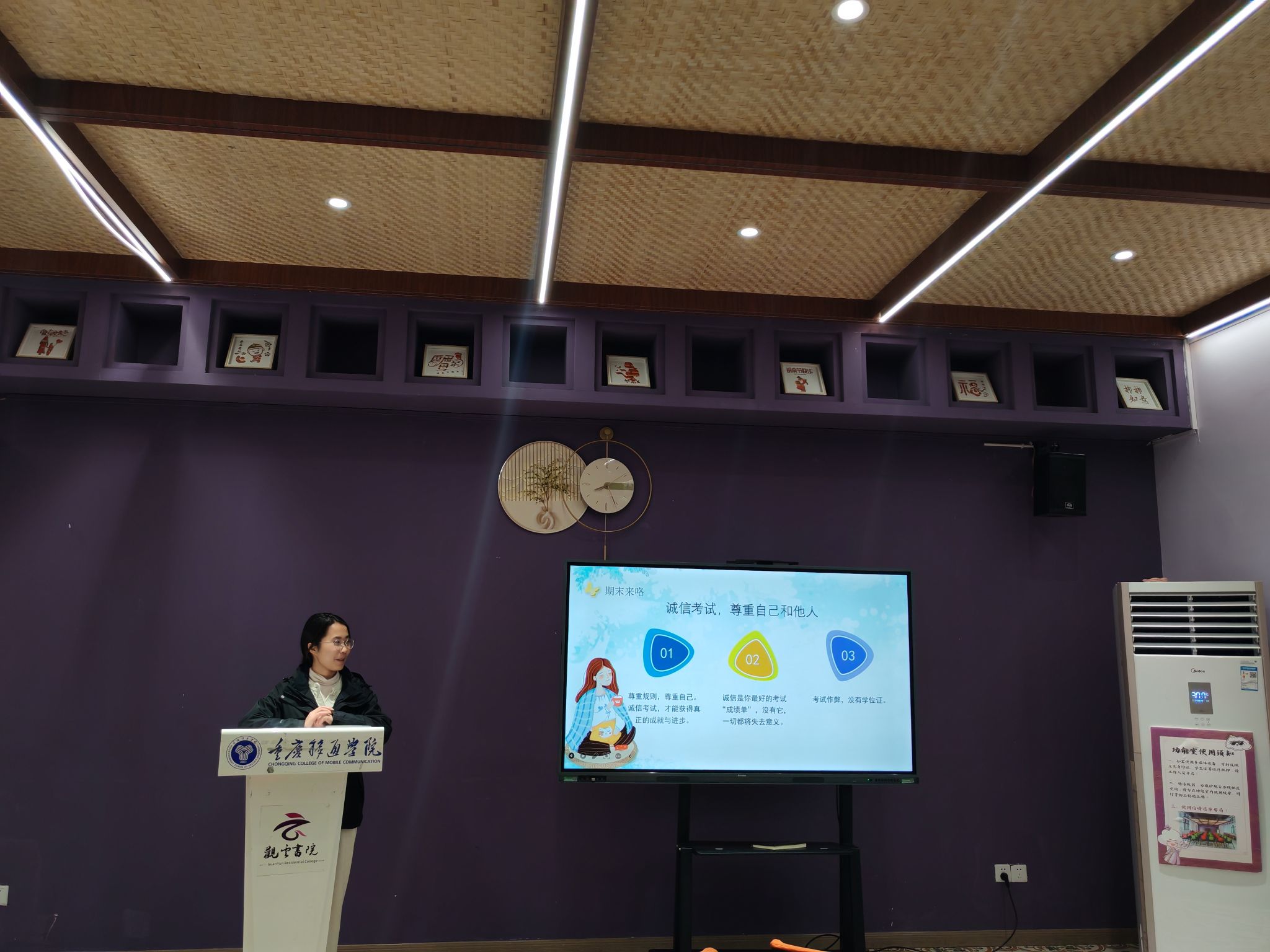 紧接着,异科导师游荟平结合即将到来的期末考试进行了相关提醒,期末诚信考试,是检验学生学习成果的重要手段,也是培养学生诚信品质的重要途径,游老师提醒大家在考试过程中,严格遵守考场纪律,不携带任何违规物品,不抄袭或协助他人抄袭,通过诚信教育,培养了学生的自律意识和责任感,引导学生树立正确的考试态度,合理安排复习时间,保持良好的心态去面对考试,也让学生明白了诚实守信的重要性。