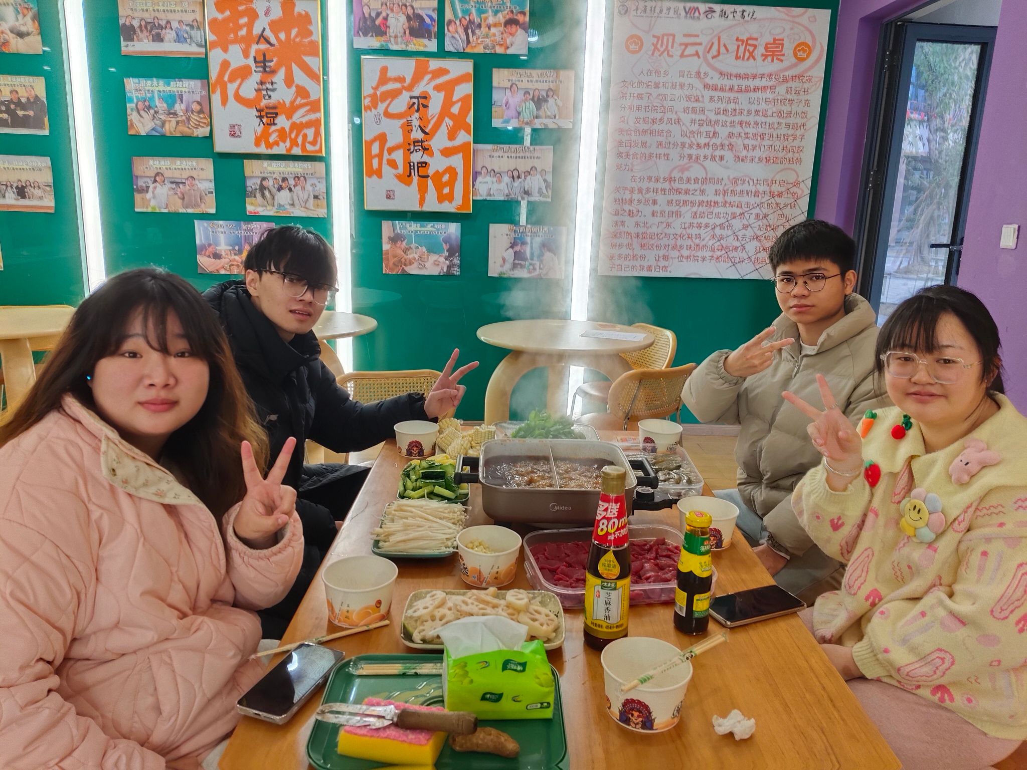 2024年12月18日,在观云书院的共享厨房内,一场食欲满载的火锅文化盛宴悄然上演。此次活动由异科导师舒玉红精心策划,旨在通过烹饪和享用火锅,带领学生们深入探索火锅背后的文化底蕴,感受中华美食的独特魅力。
