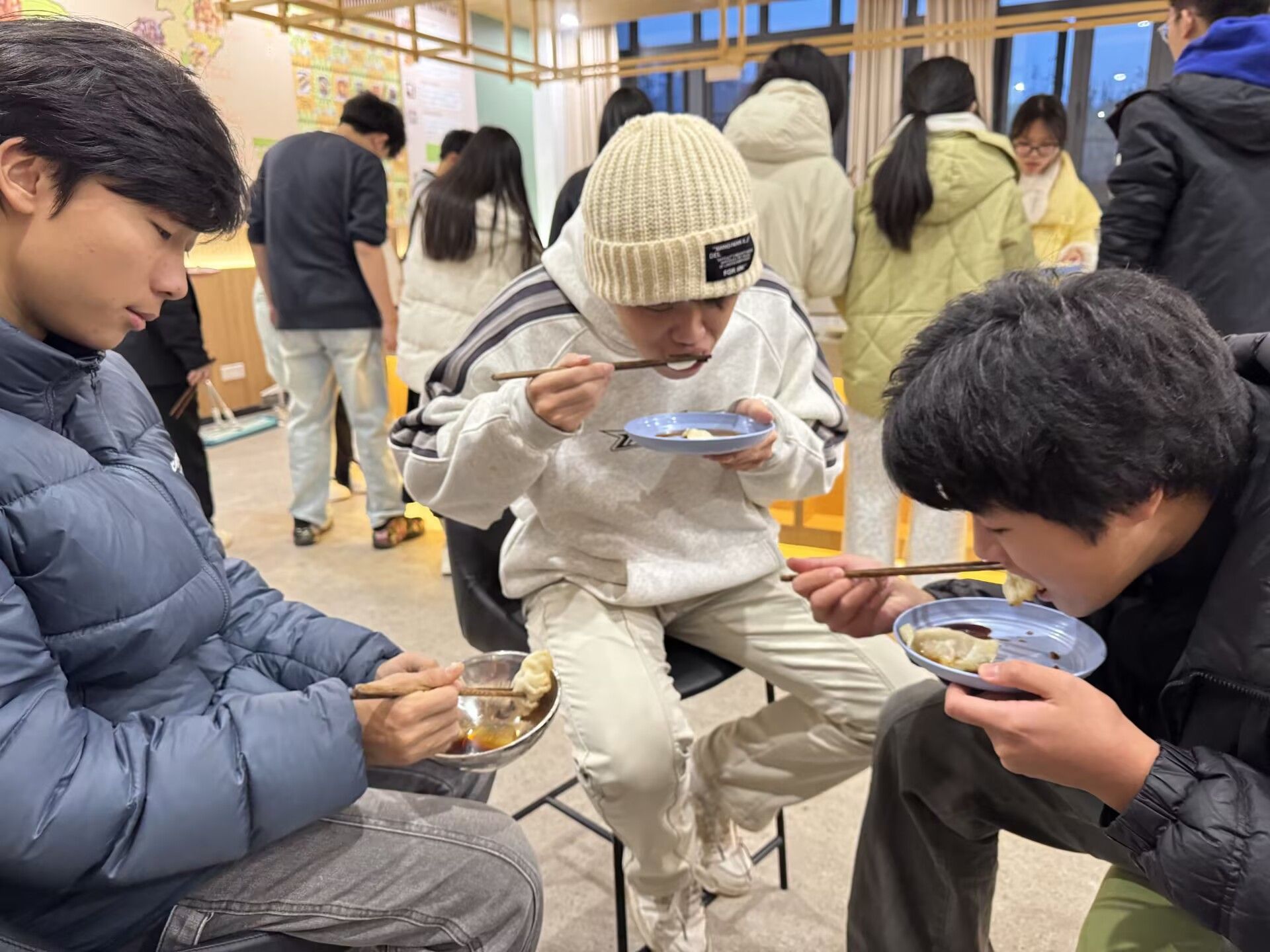 随着一盘盘热气腾腾的饺子出锅,同学们品尝着自己亲手包的饺子,脸上洋溢着幸福的笑容。大家在享受美食的同时,也感受到了团队合作的成果和班级大家庭的温暖。