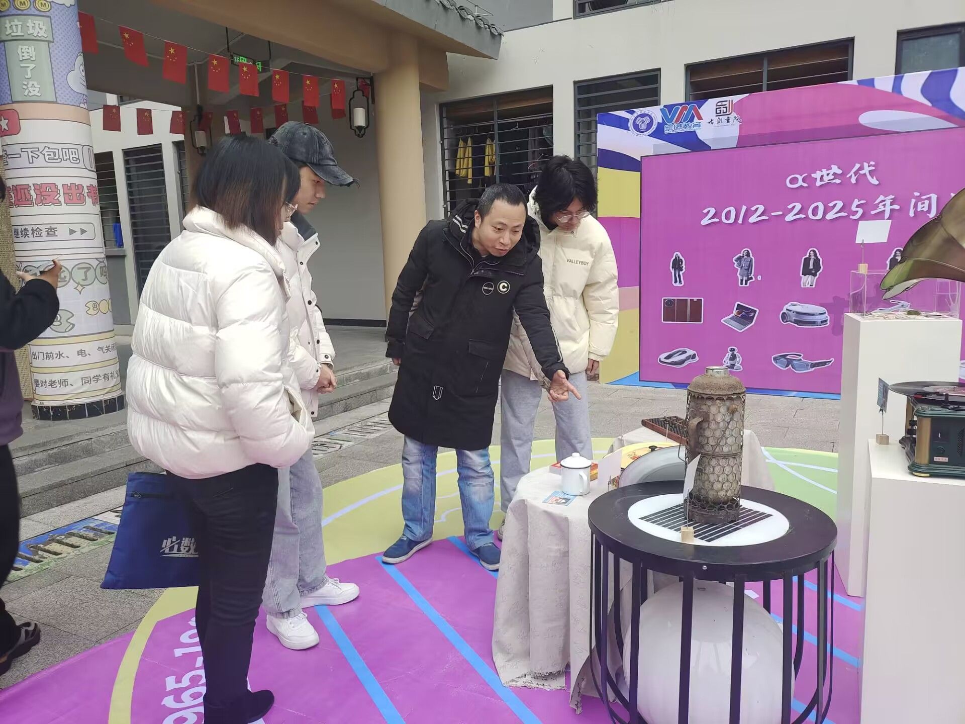 展览当天,李老师站在展览入口,向同学们详细介绍起了这次生活美学藏品展的独特魅力:“同学们,这是一个充满故事与回忆的世界。这次藏品展汇集了七八十年代的生活用品,它们不仅仅是物质的载体,更是时代精神的见证。每一件藏品背后,都藏着一段历史,一种情怀,等待我们去发现,去感受。”