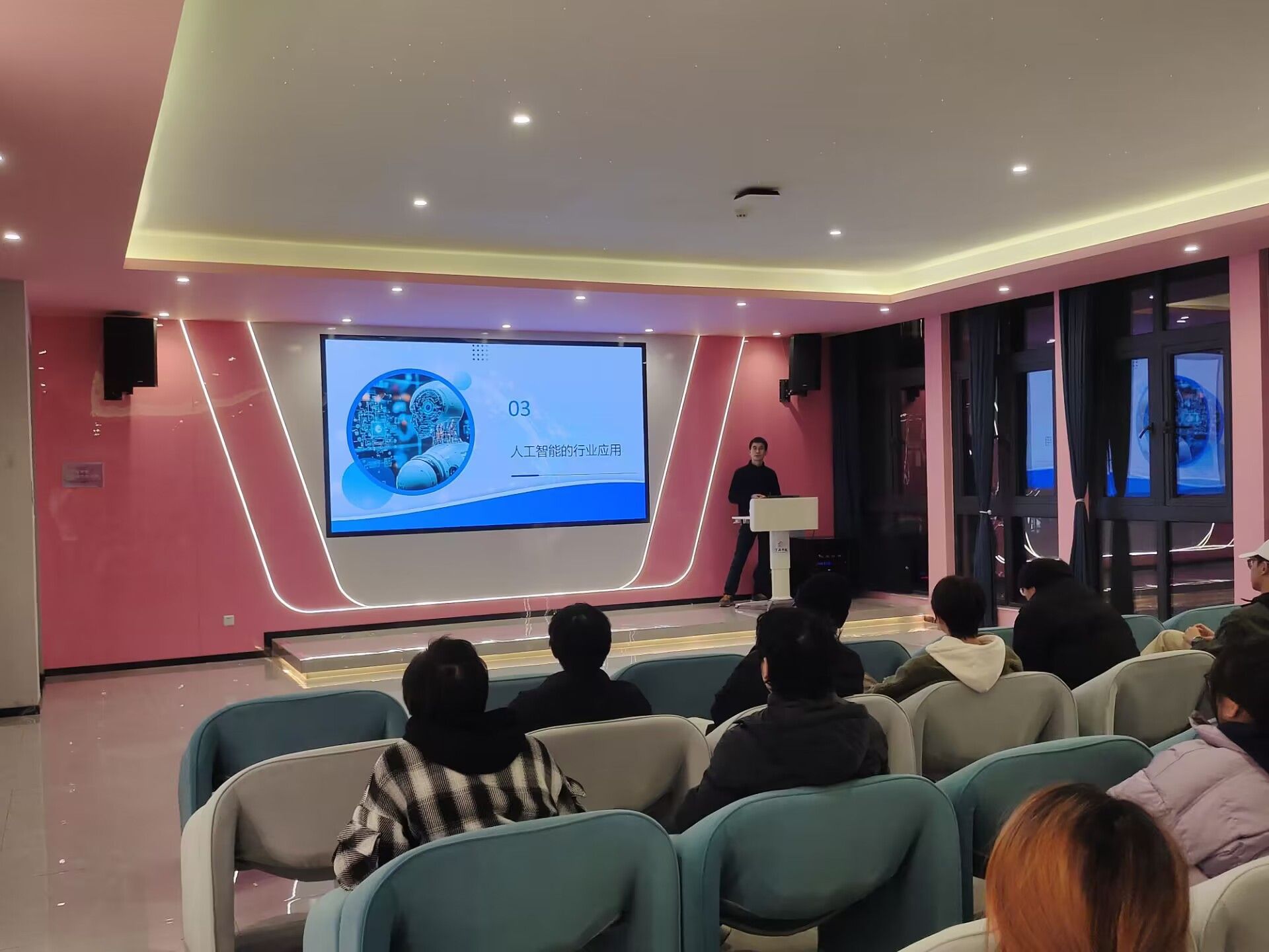 活动伊始,刘成成老师简要介绍了人工智能的历史与发展,阐述了从符号主义到深度学习的演变过程。随后,刘老师结合人工智能在各行业中的应用,尤其是在大数据、金融、医疗等领域的实践,帮助同学们了解了人工智能如何推动行业变革。