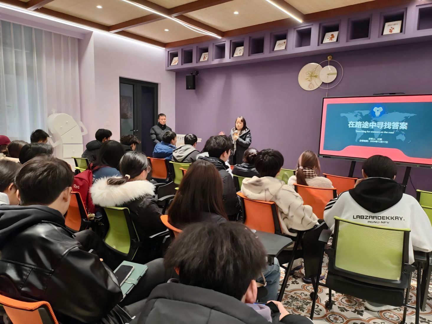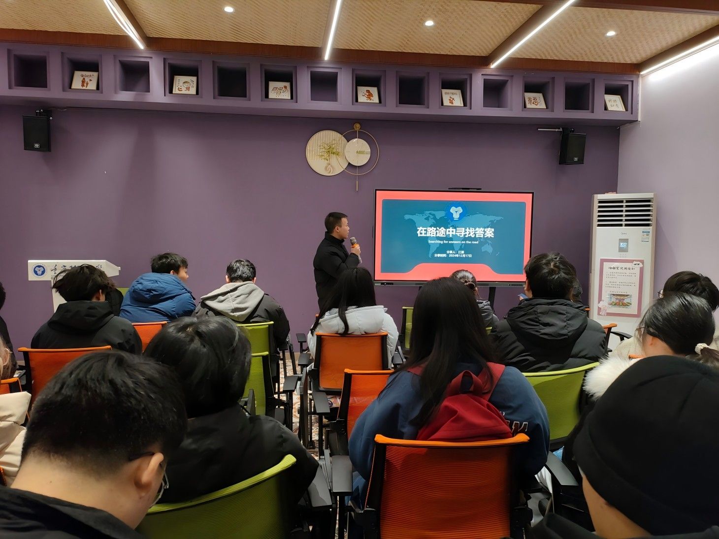 活动伊始,江源学长回顾了自己初入大学时的迷茫与探索,讲述了如何在丰富多彩的社团活动、专业课程学习以及实习实践中逐渐找到自己的兴趣与方向。他强调,大学是一个多元化的舞台,每个人都有机会去尝试新事物,不要害怕犯错,因为每一次的尝试都是成长的宝贵财富。
