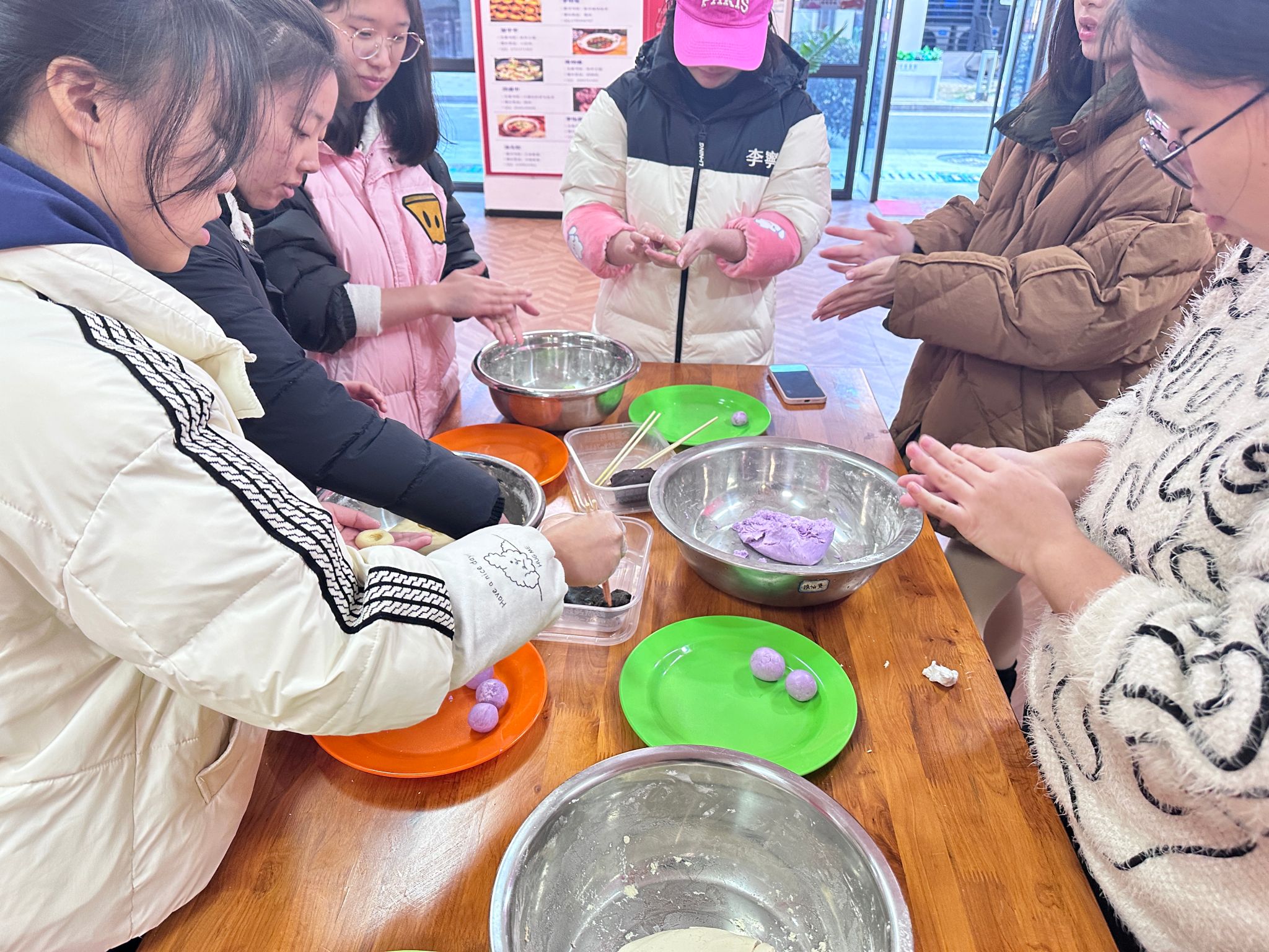 2024年12月16日16:00,在玉棠书院的半糖煮艺烘焙坊内,欢声笑语不断,异科导师肖其宇带领22级供应链管理2-3班的同学们在此开展了一场以“创意汤圆,欢乐无限”为主题的集体活动。此次活动旨在增进师生情谊,丰富同学们的课余生活,同时传承中华传统美食文化。