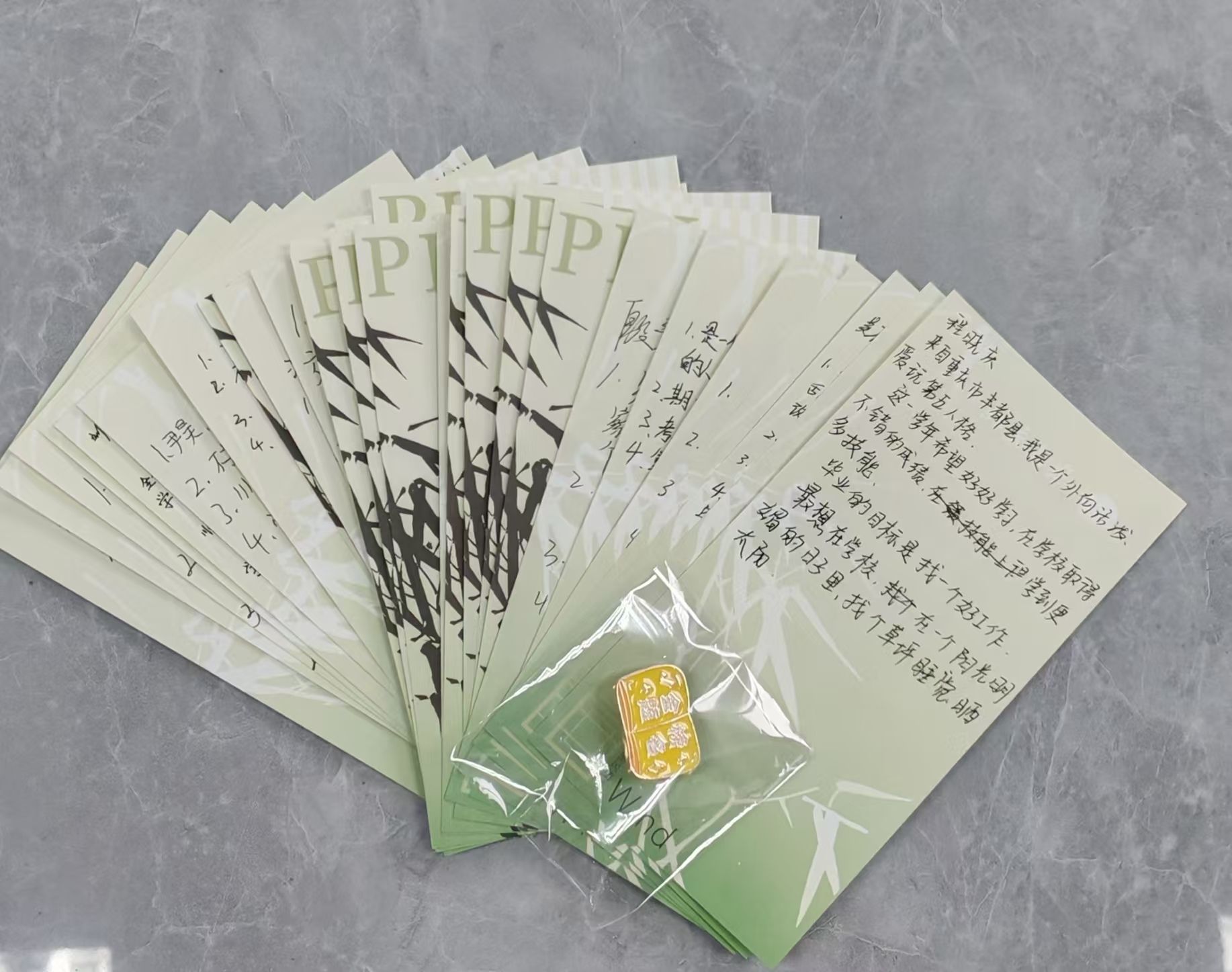 见面会伊始,刘老师热情的给同学们分发她前期为大家精心准备的饮品、便签和小徽章,每一枚闪闪亮的徽章都代表着老师对同学们的谆谆祝愿,临近考试,徽章上的小小祝福语也是在给同学们加油打气一路陪伴。而其中一枚独一无二的“少年请发光”五角星徽章成为了幸运儿,被选中为老师的“小助手”。