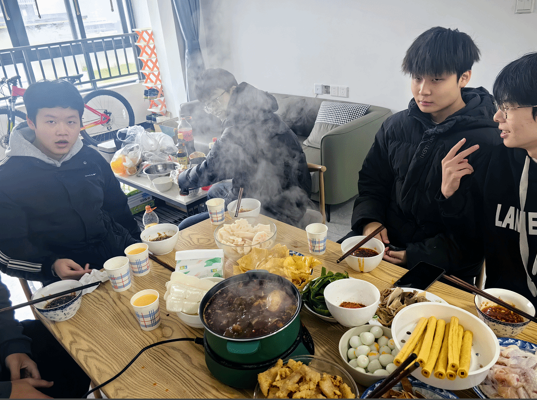 随着冬日的寒风逐渐凛冽,异科导师项城振韬精心策划了一场特别的火锅活动,旨在为同学们送去冬日的温暖,同时提供一个交流思想、关心生活的平台。这场活动不仅让同学们在寒冷中感受到暖意,更是一次心灵的交流和思想的碰撞。活动在教师教师宿舍里举行,桌上准备的菜肴营造出一种家的氛围。同学们陆续到达,每个人的脸上都洋溢着期待和兴奋。甘振韬老师亲自迎接每一位同学,热情地引导他们入座。火锅的香气四溢,让人垂涎欲滴,而更让人期待的是即将开始的交流和分享。
