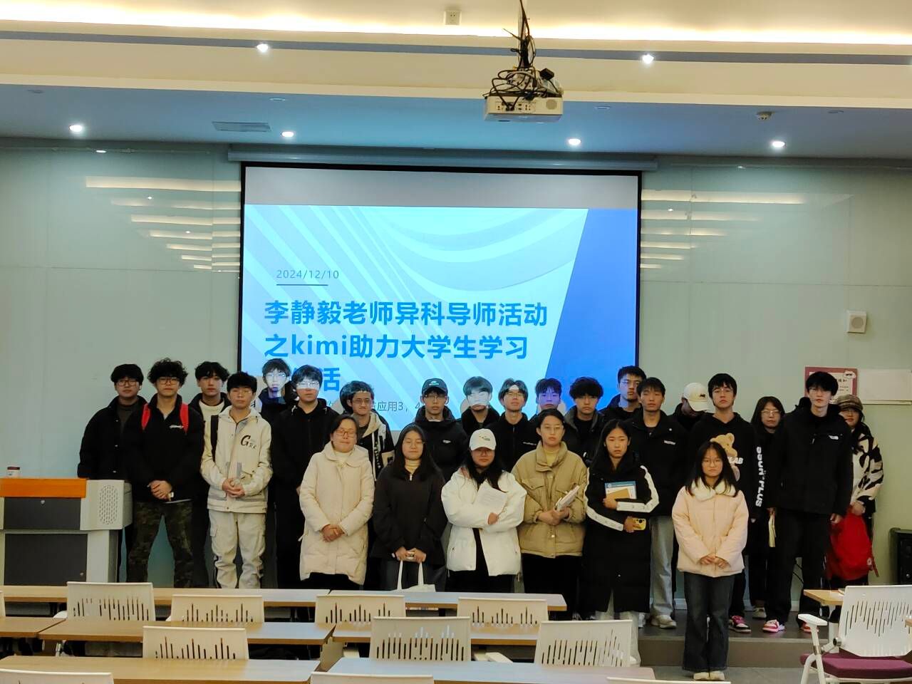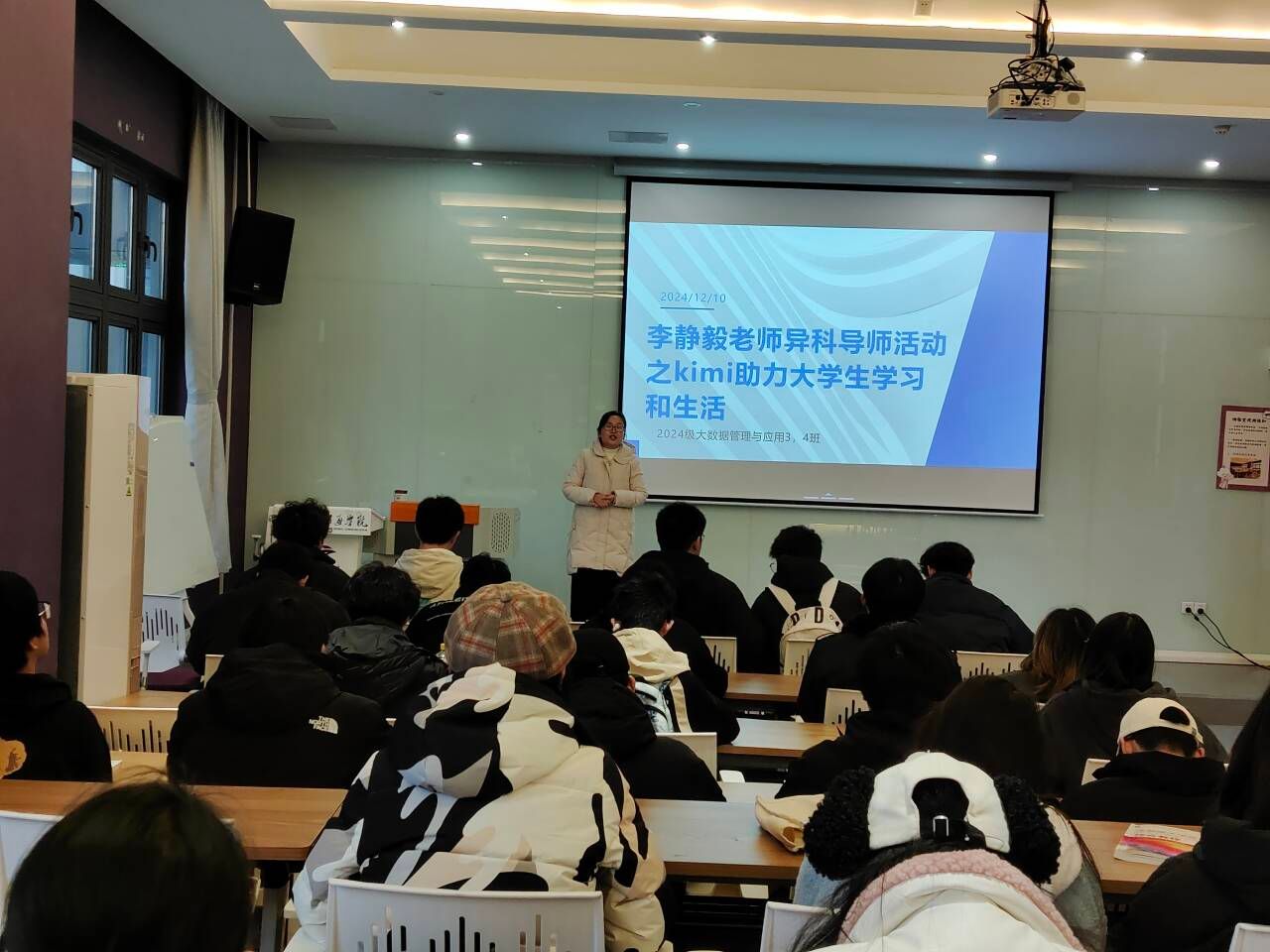 为落实全生异科导师制度,响应全生异科导师为学生的“以学生充分发展为中心”的教育理念,异科导师李静毅携手2024级大数据管理与应用3-4班同学于2024年12月10日下午在观云书院冬至多媒体教室开展了主题为“Kimi智能助手:助力大学生日常学习和生活”的异科导师活动。
