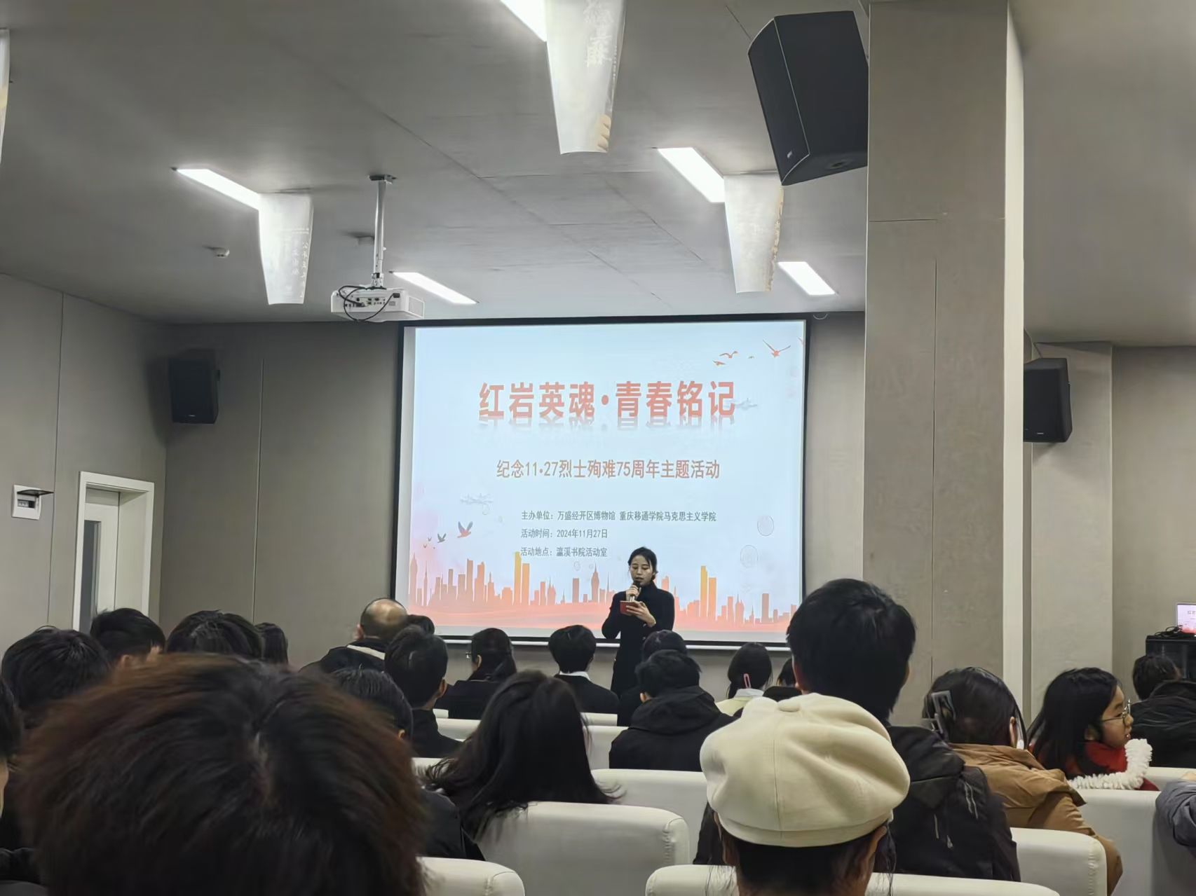 为培养同学们的历史责任感、爱国情怀,传承红岩精神,陈静异科导师小组成员于11月27日下午,在瀛溪书院中庭及潜台词影音室,开展“红岩英魂・青春铭记”“11·27”烈士殉难75周年纪念活动。