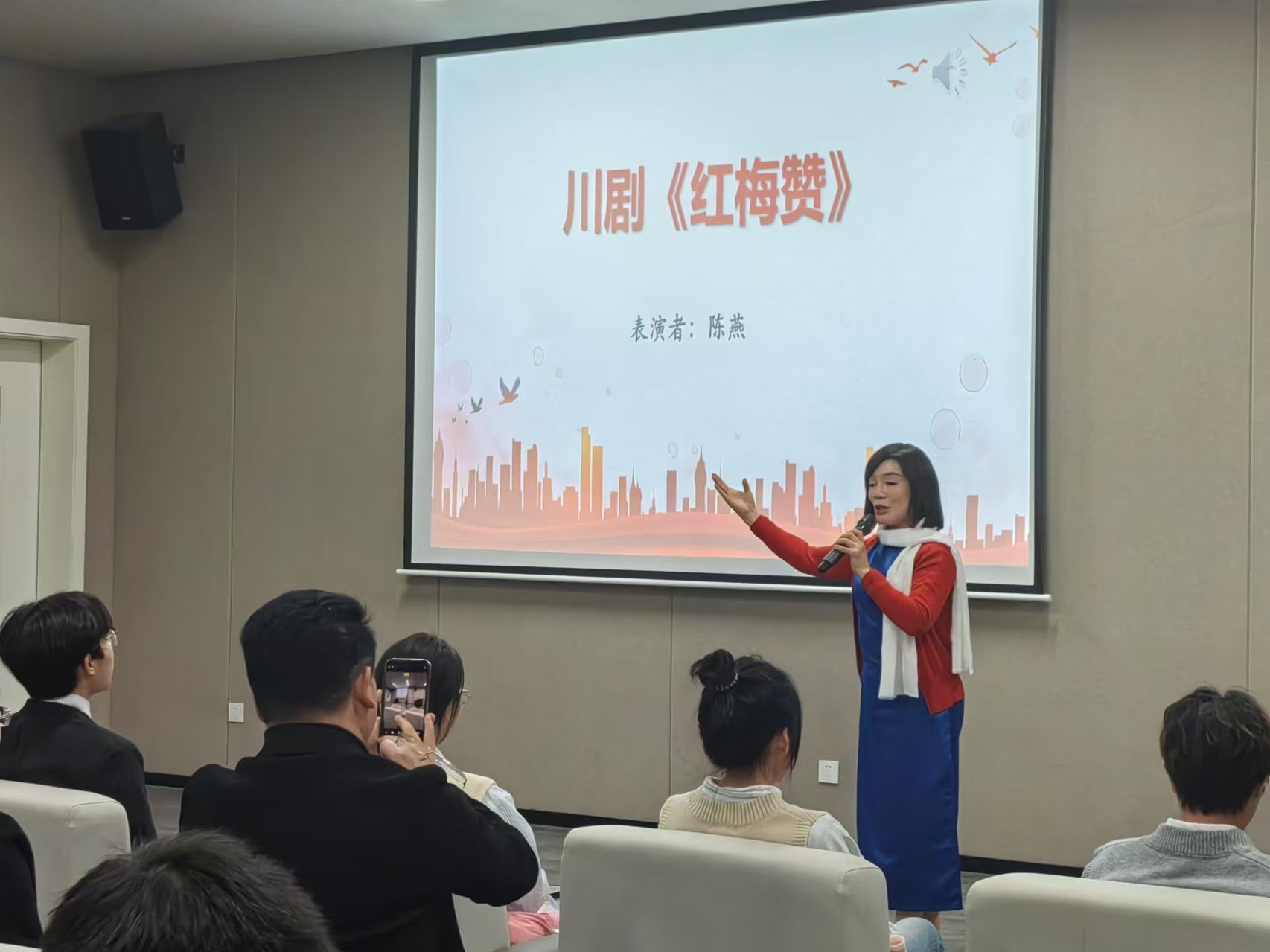 紧接着,川剧非遗传承人陈燕老师演绎了川剧《红梅赞》,她以传统戏曲艺术形式展现了革命先烈们为理想而生、为信仰而死的崇高精神,让同学们在艺术中感受到革命者们坚贞不屈、勇于牺牲的革命精神。