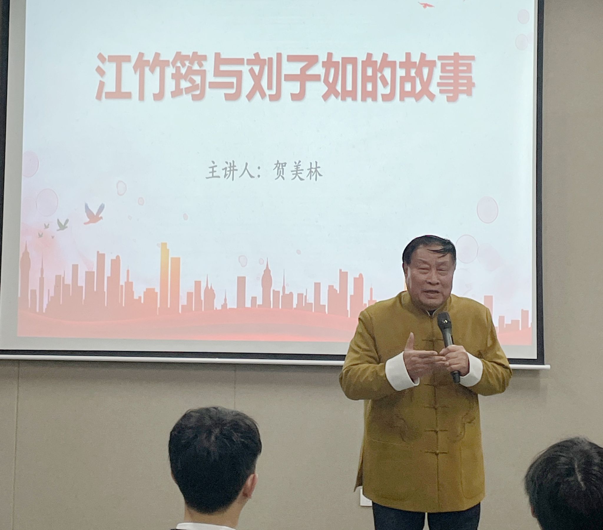 随后,重庆市曲艺家协会终身成就奖获得者贺美林老师,讲述了江竹筠与刘子如的故事,同学们聆听了江竹筠的英勇事迹和刘子如先生在慈善和爱国事业上做出卓越贡献的故事,感悟着红岩英烈的红岩精神。