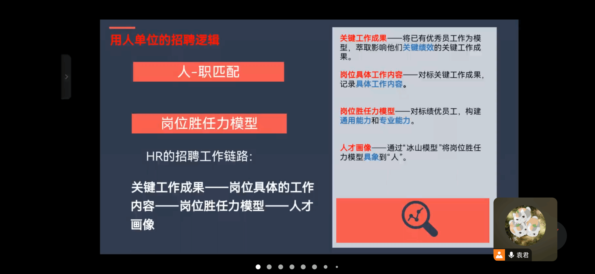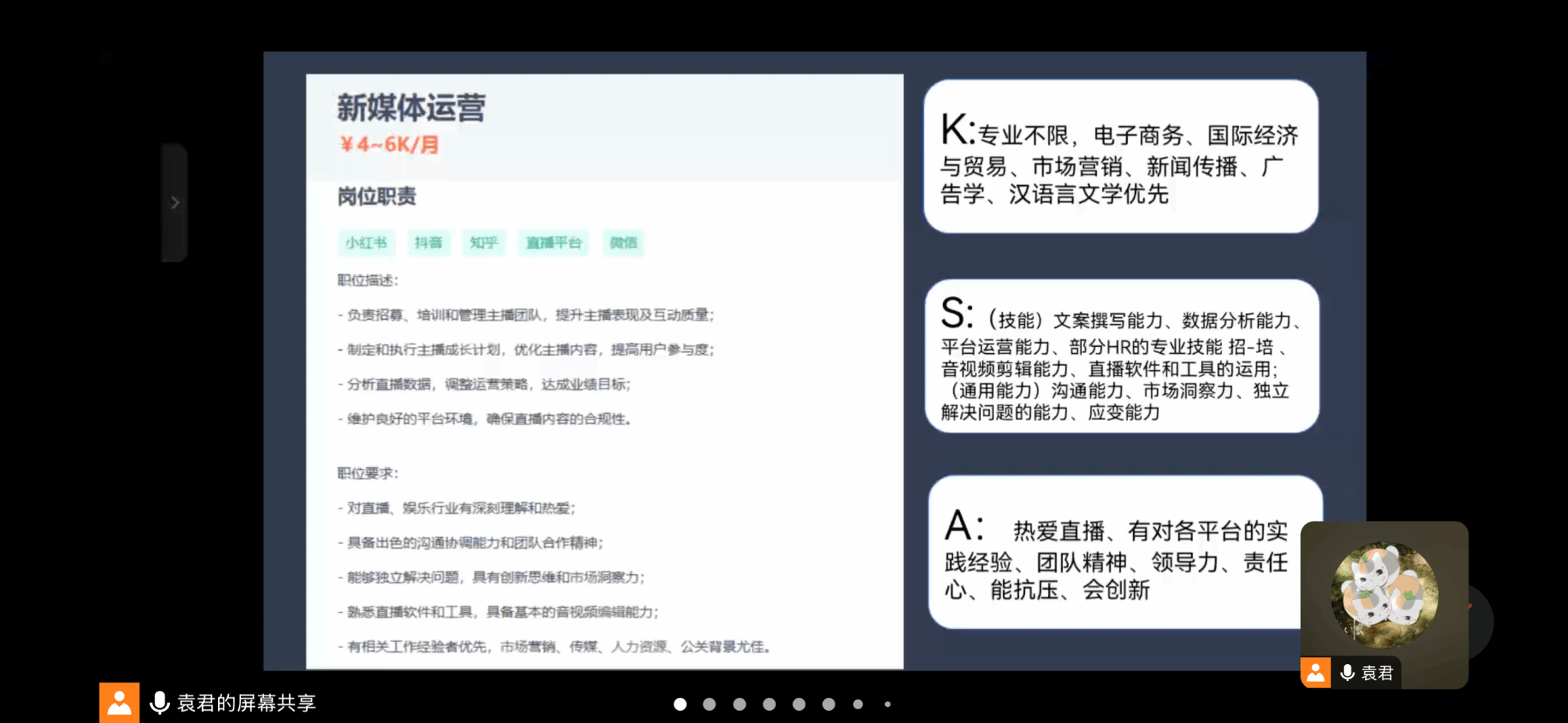 会议伊始,袁君老师详细分析了用人单位的招聘逻辑和流程。通过深入浅出的讲解明白了HR的招聘工作链路,为针对性地准备求职材料和应对面试提供了方向。
