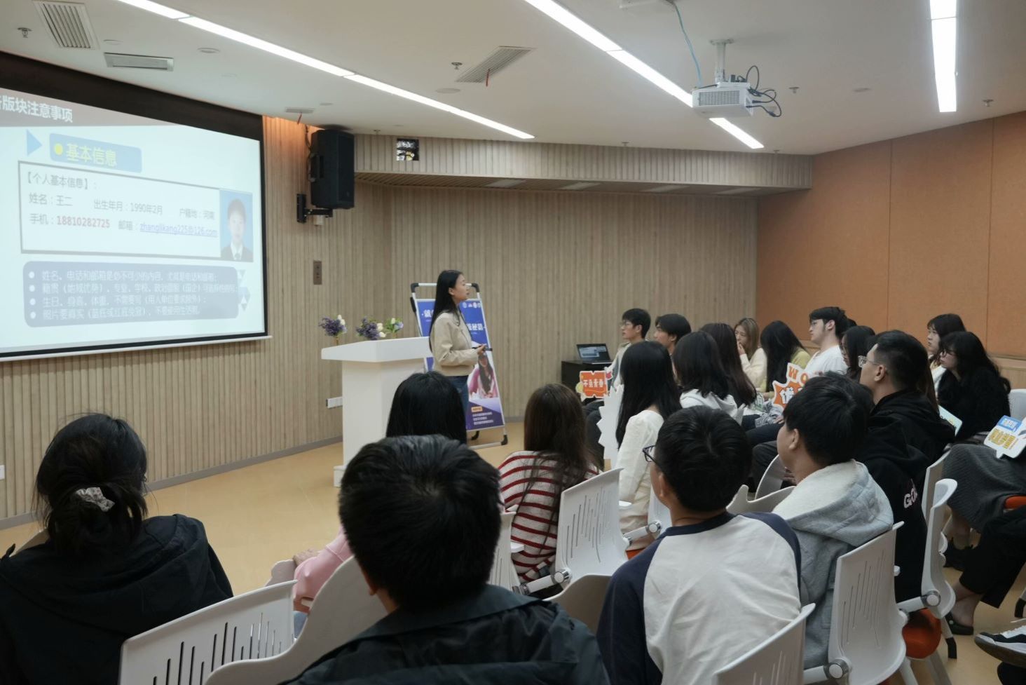 在随后的简历修订环节,同学们依据所掌握的知识,对先前制作的简历进行了精细的修订。他们不断改善简历的内容和布局,力求使简历更加简洁明了、突出亮点。同时,指导老师也在现场提供了持续的反馈和建议,帮助同学们不断完善简历。