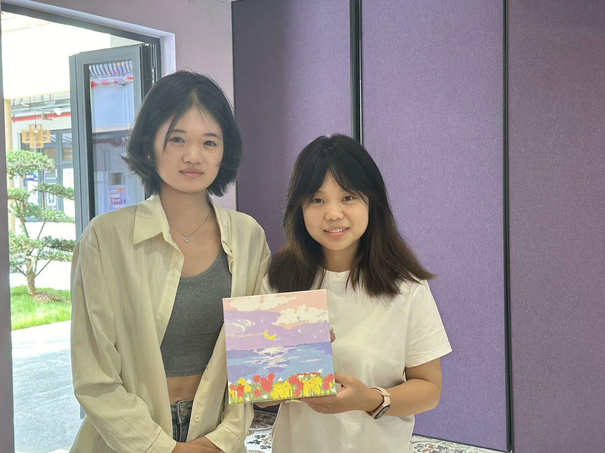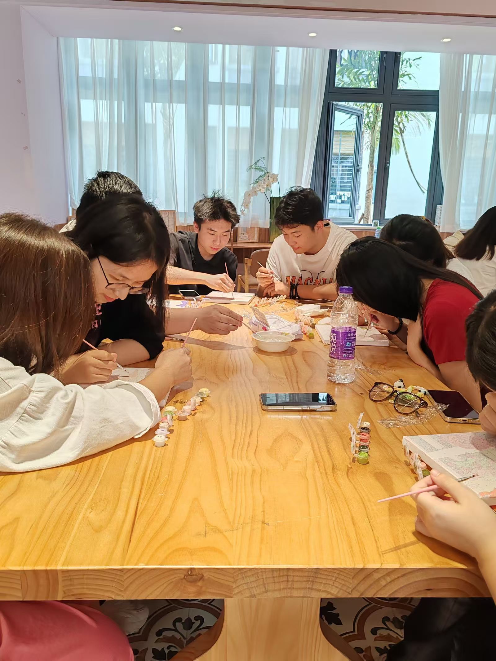 在这个过程中,大家分工合作,默契十足。有的负责勾勒轮廓,他们用画笔轻轻地描绘出物体的形状,为整个画面奠定基础;有的精心填充色彩,他们仔细地挑选着颜料,将最恰当的颜色涂抹在相应的位置,让画面变得更加生动;还有的发挥创意进行点缀,他们在画面中加入一些小细节,如花朵上的露珠等,使作品更加富有感染力。每个人都充分发挥自己的特长,为共同的作品贡献着力量。